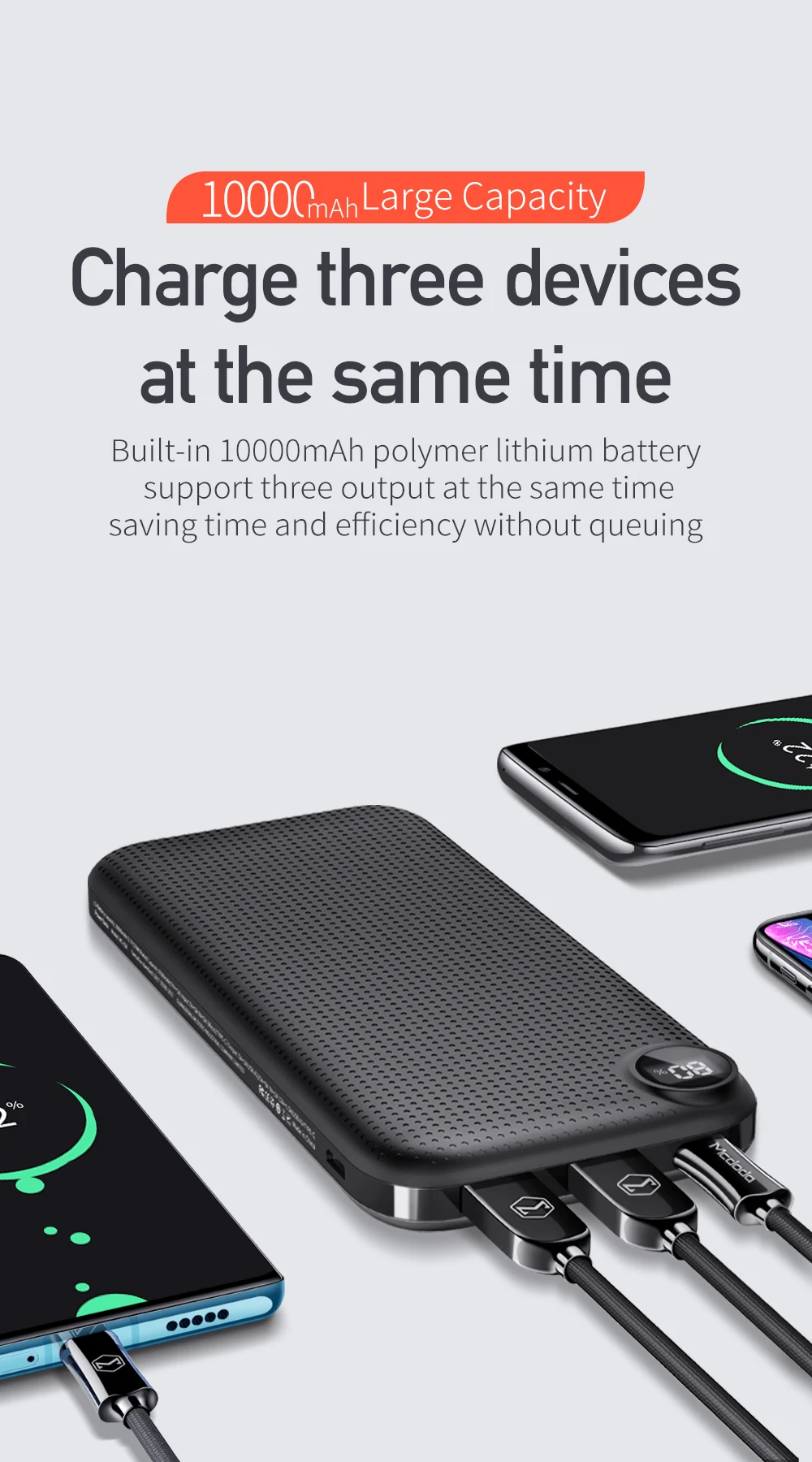 Built-in 10000mAh polymer lithium battery support three output at the same time