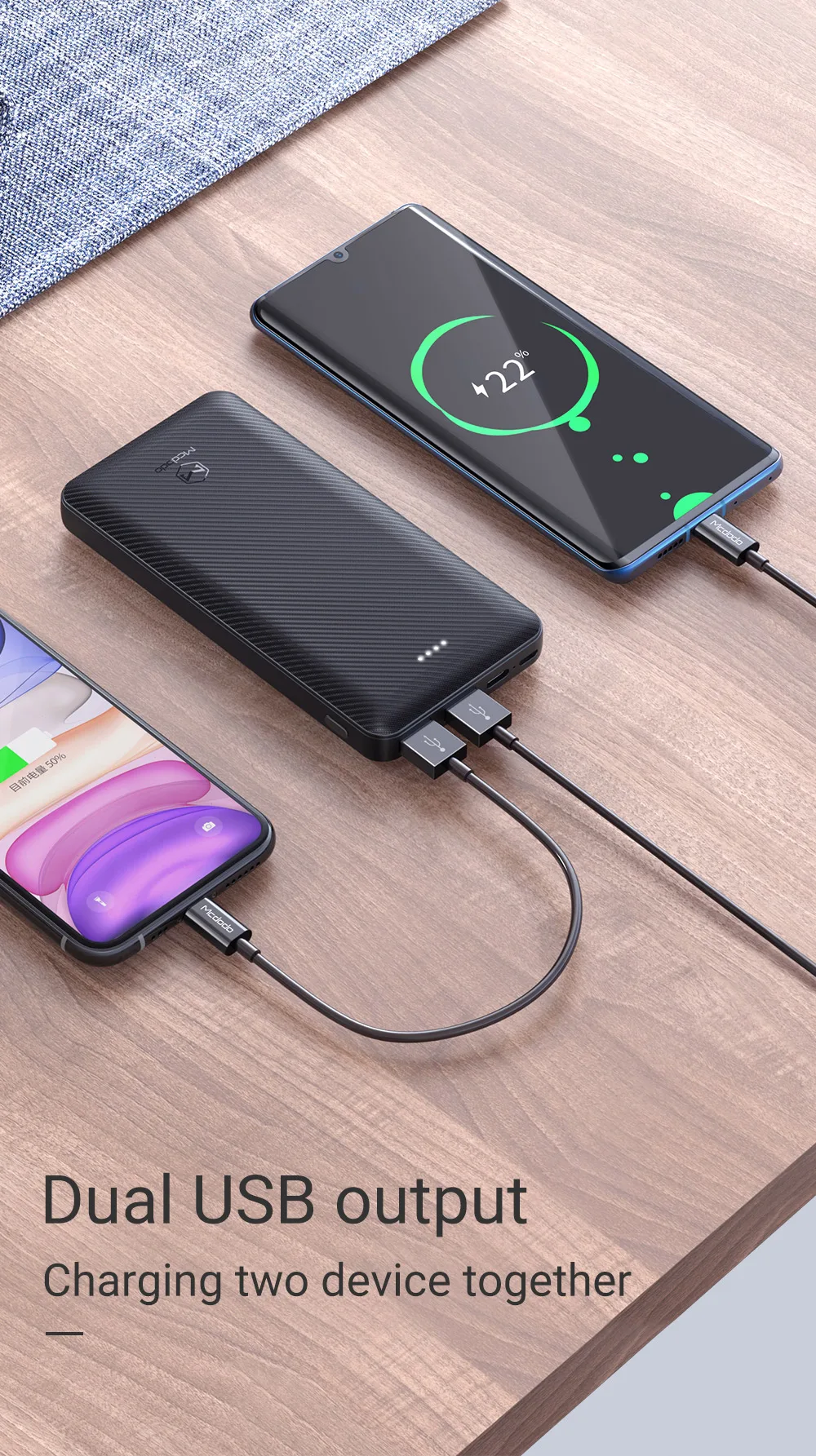 Dual USB output Charging two device toggether
