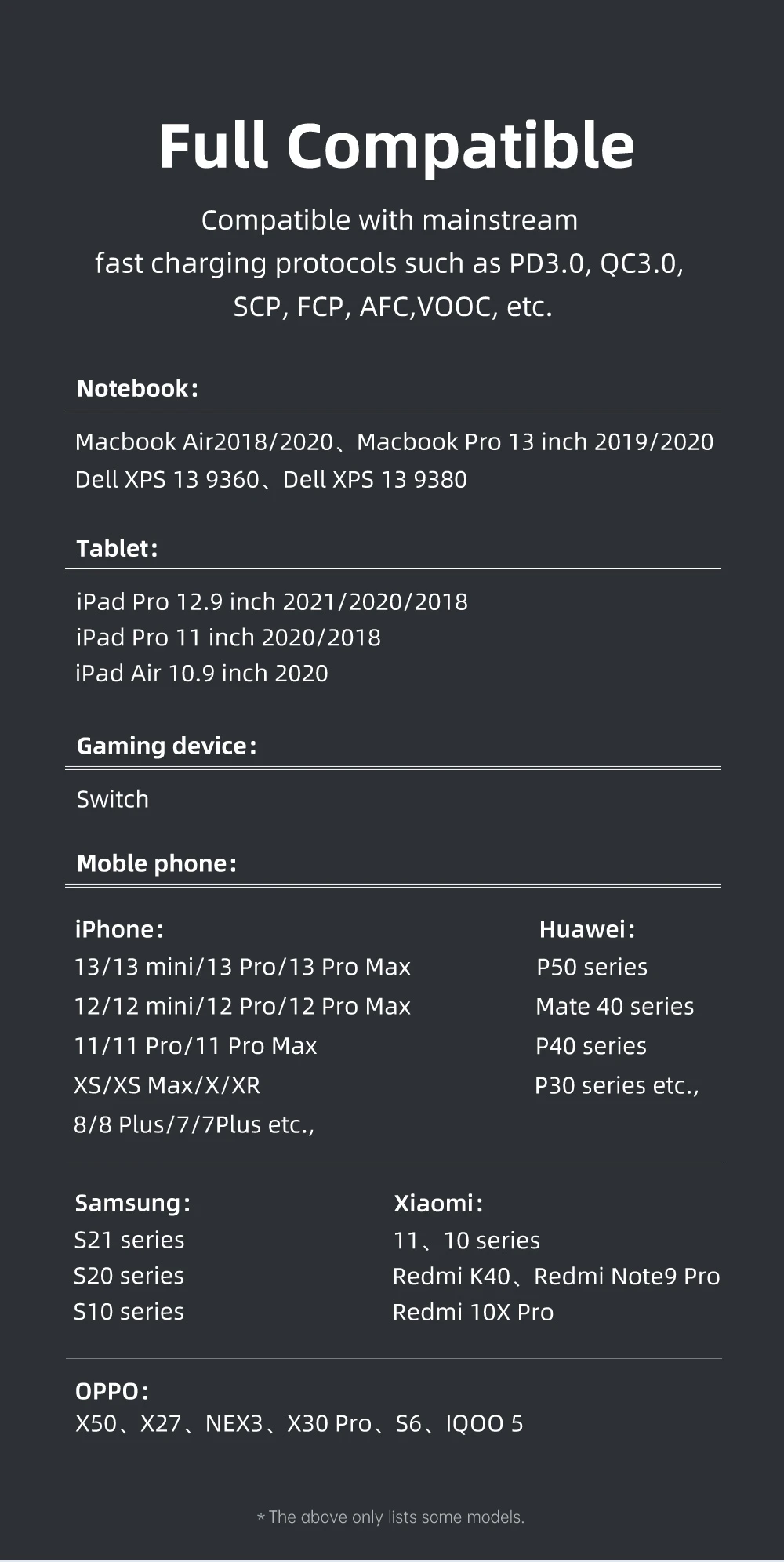 Applicable : Support QC 4.0 3.0 Quick Charger