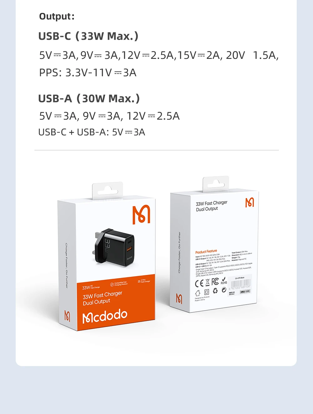 USB C:(33W Max.) : 5V/3A,9V/3A,12V/2.5A,15V/2A,20V/1.5V,PPS:3.3V-11V/3A
