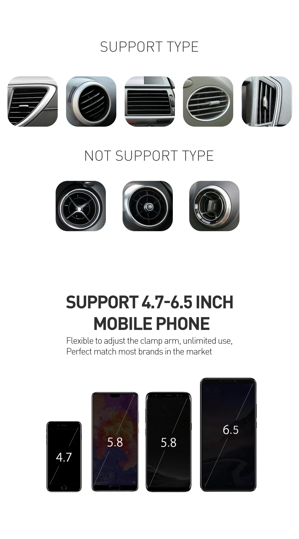 SUPPOR TYPE NOT SUPPORT TYPE SUPPORT 4.7-6.5 INCH MOBILE PHONE