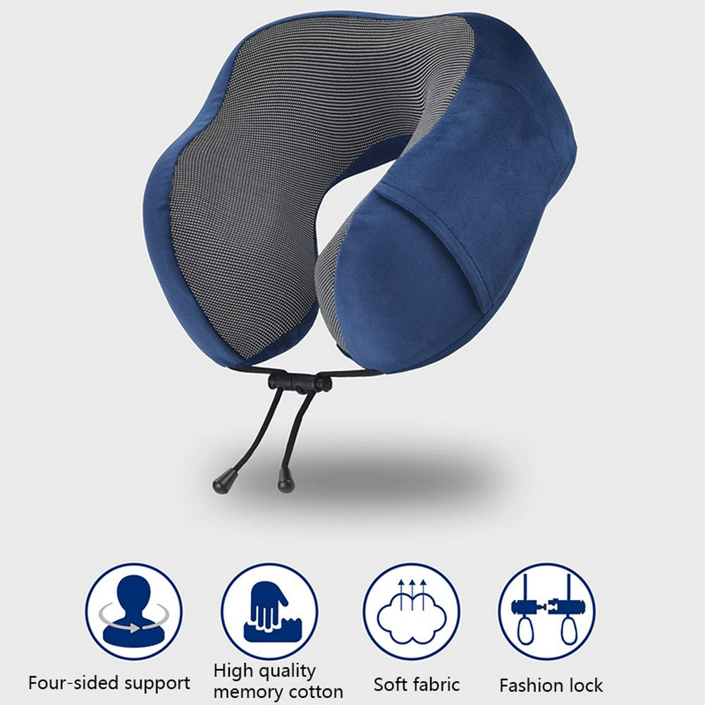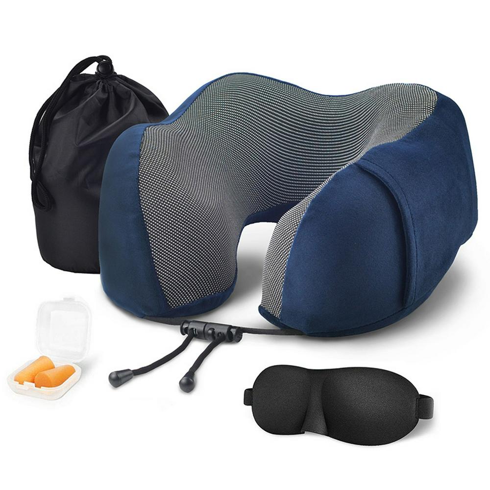 Memory Foam Neck Pillow Resiliant U Shaped Support Pillow with Blinders