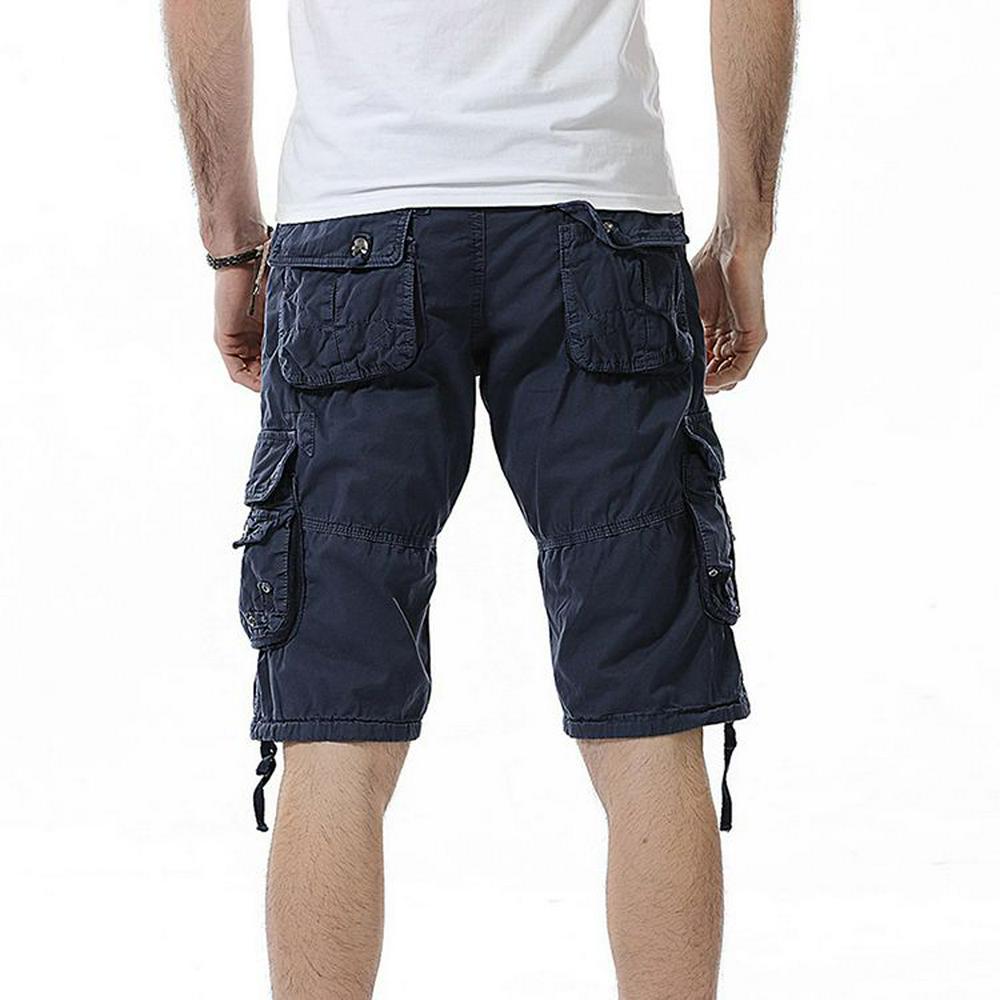 Men's 100% Cotton Cargo Shorts Multiple-pocket Casual Shorts Zipper Fly - Navy Blue, Red
