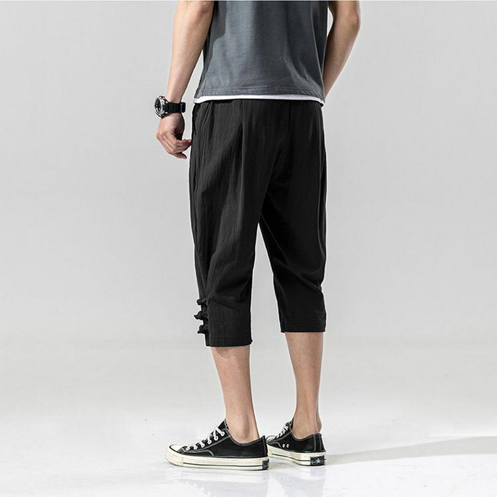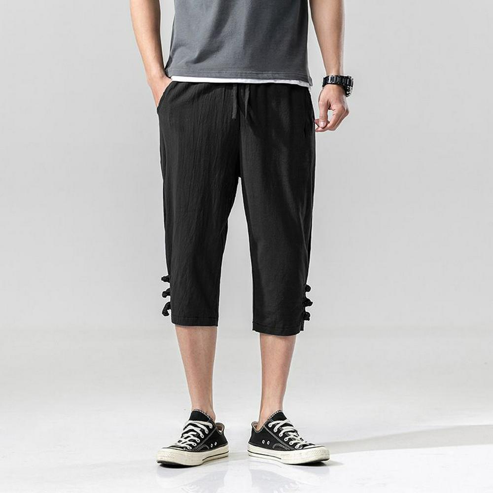 Men's Capri Shorts Casual Drawstring Pants Plain Color Shorts - Black, Grey