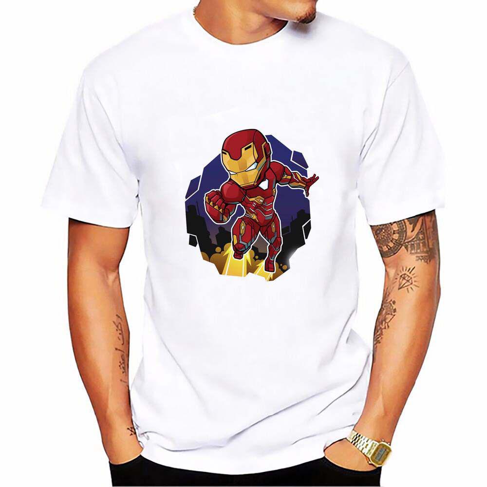 Men's Loose Printed T-shirt O-Neck Short-sleeved Top for Summer - Design C