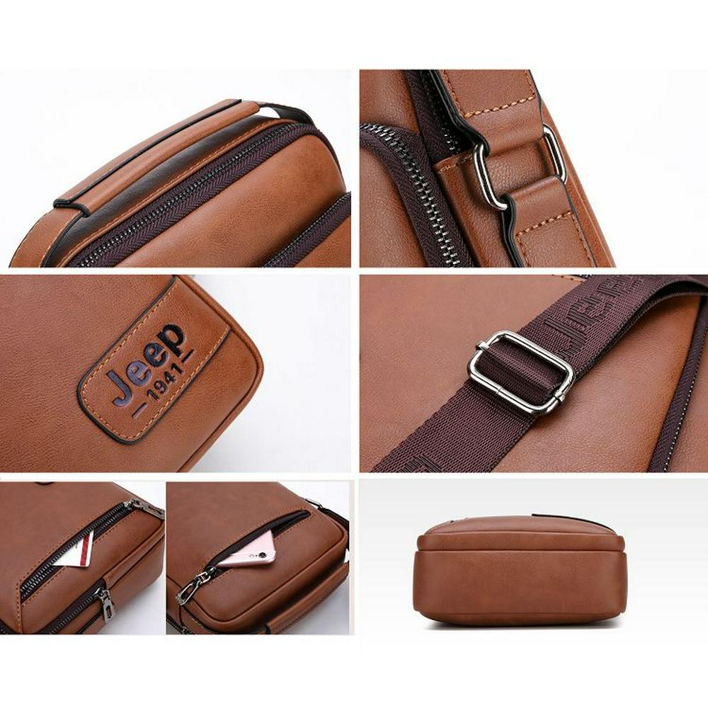 Men's Mini Briefcase Leather Shoulder Bag with Detachable Shoulder Strap