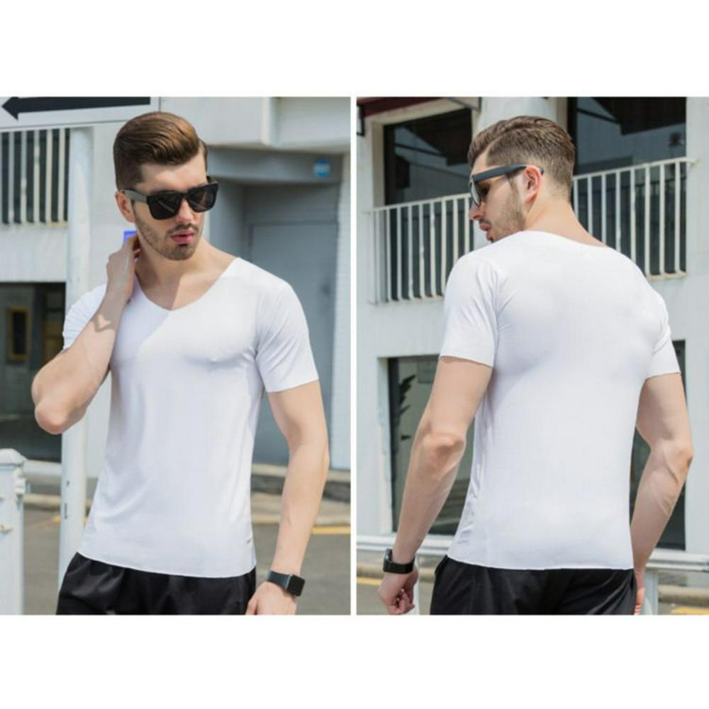 Men's Scoop Neck T-shirt Ice Silk Red Marks Free Sports Top - White, Black, Grey