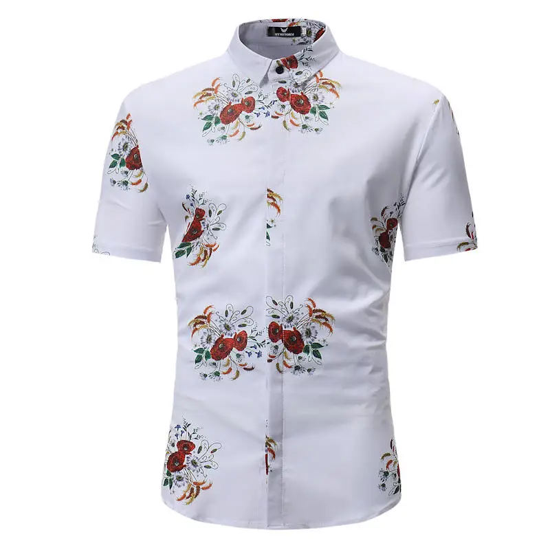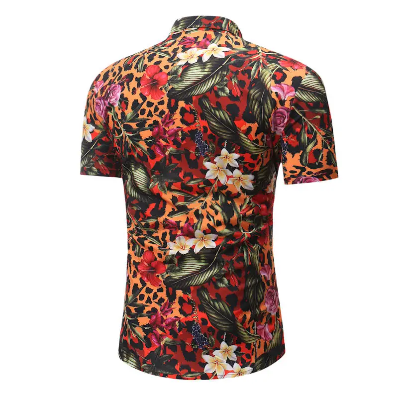 Men's Shirt Summer Palm Tree Print Beach Hawaiian Men's Casual Short Sleeve Shirt Chemise