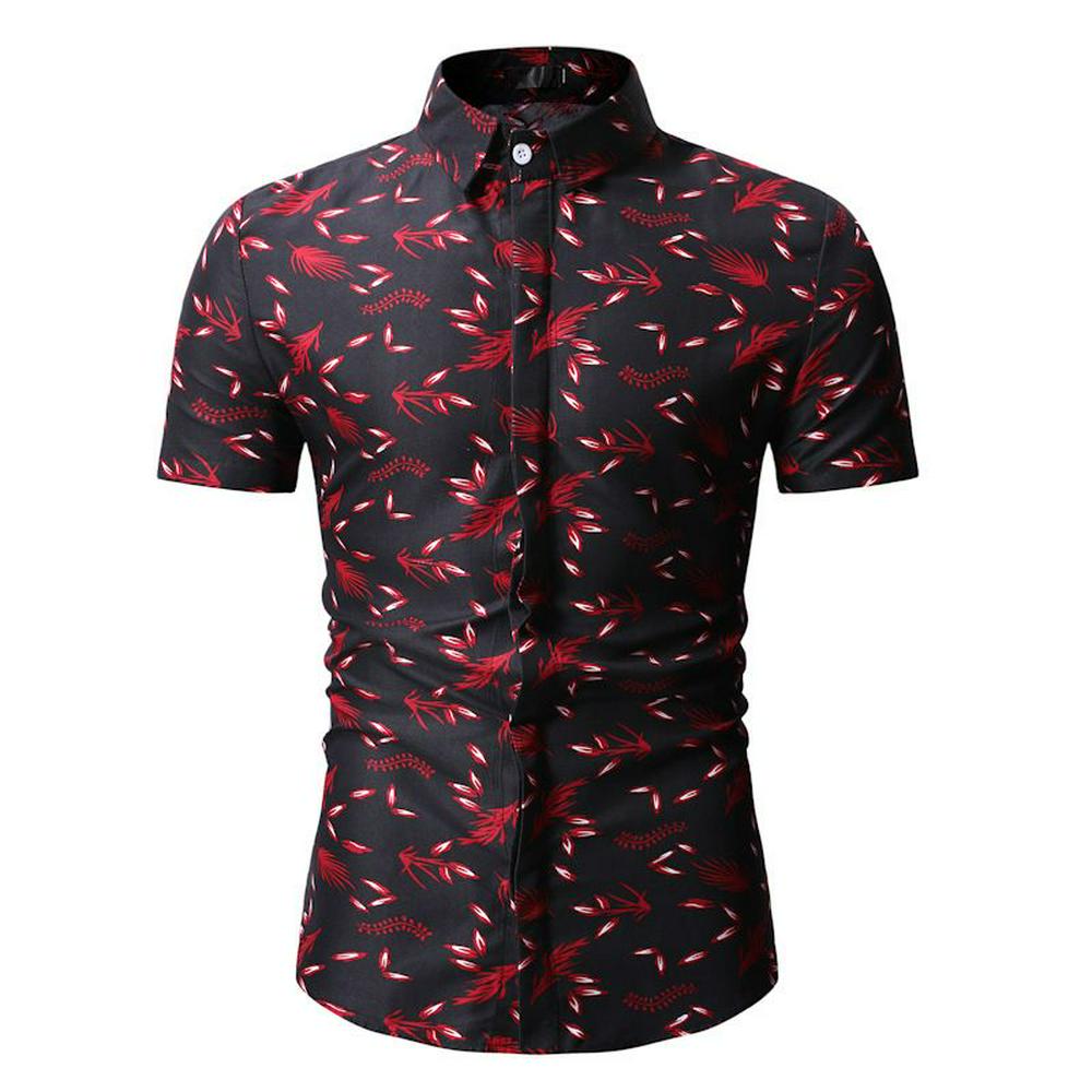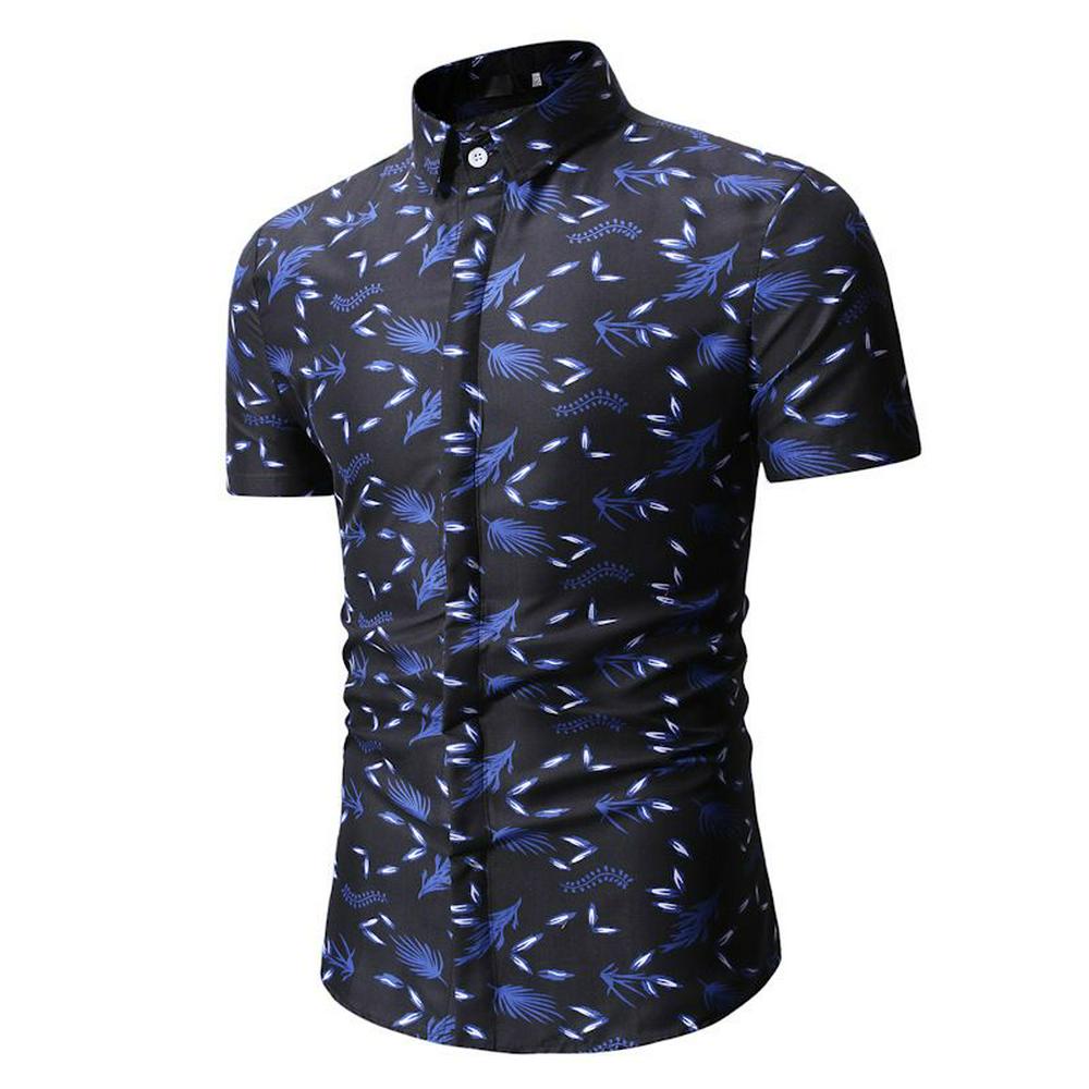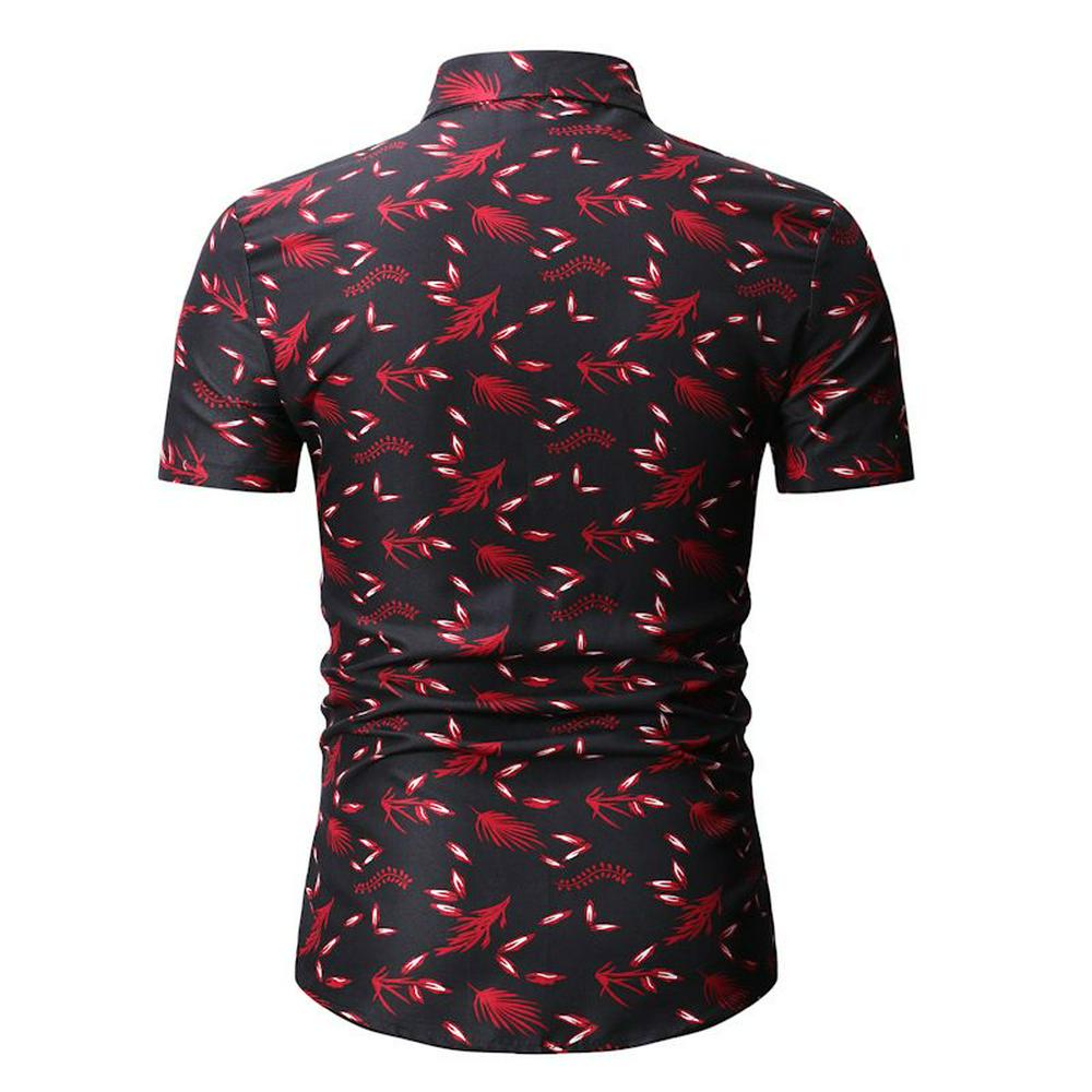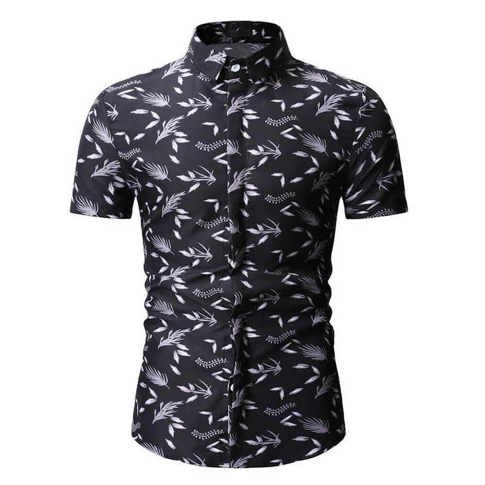 Men's Summer Beach Shirt Leaves-printed Button-down Top with Short Sleeves