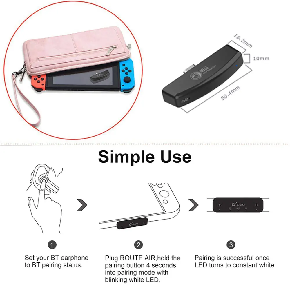 1. A1 Gaming Wireless Bluetooth Audio Adapter is used for Nintendo Switch, Switch lite, PS4 / PS3 console and PC to connect Bluetooth headphones or speakers.
