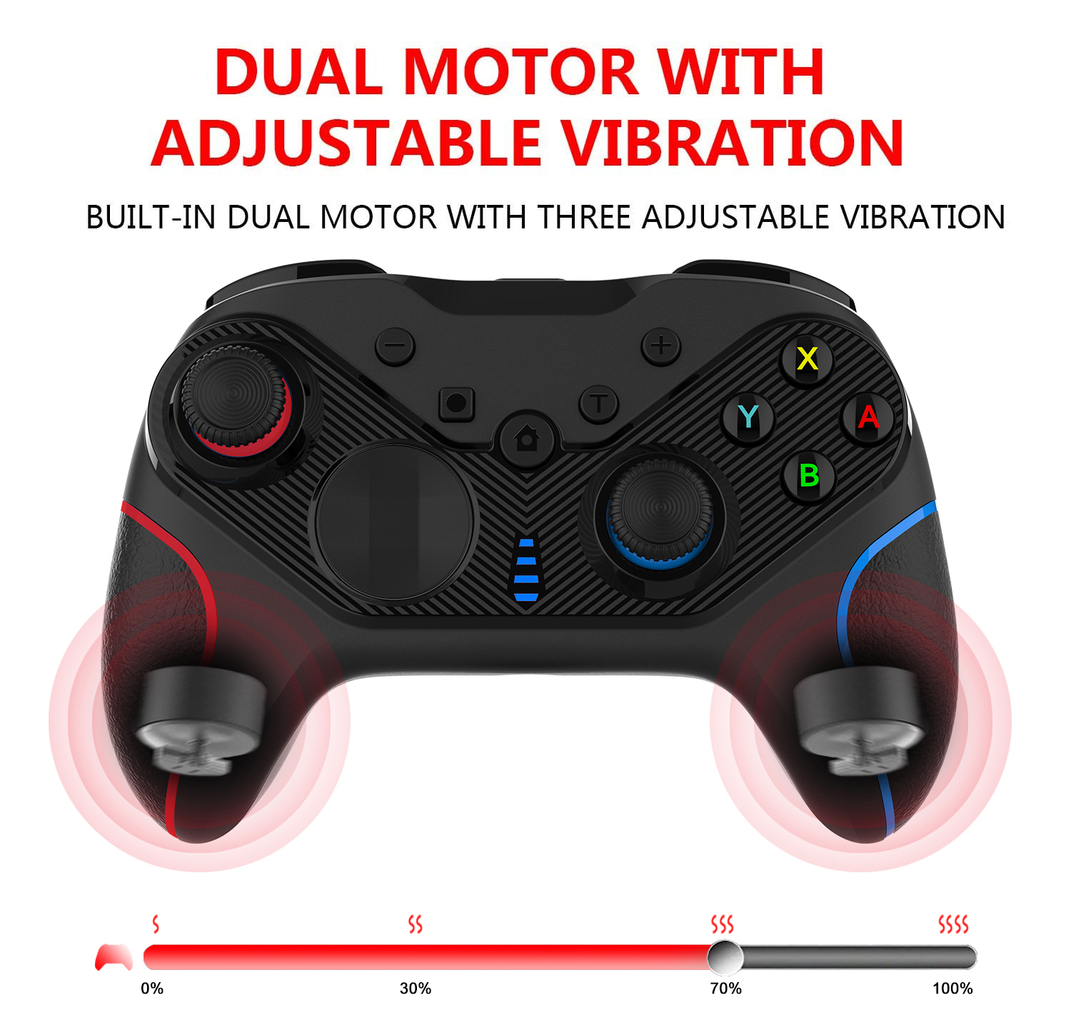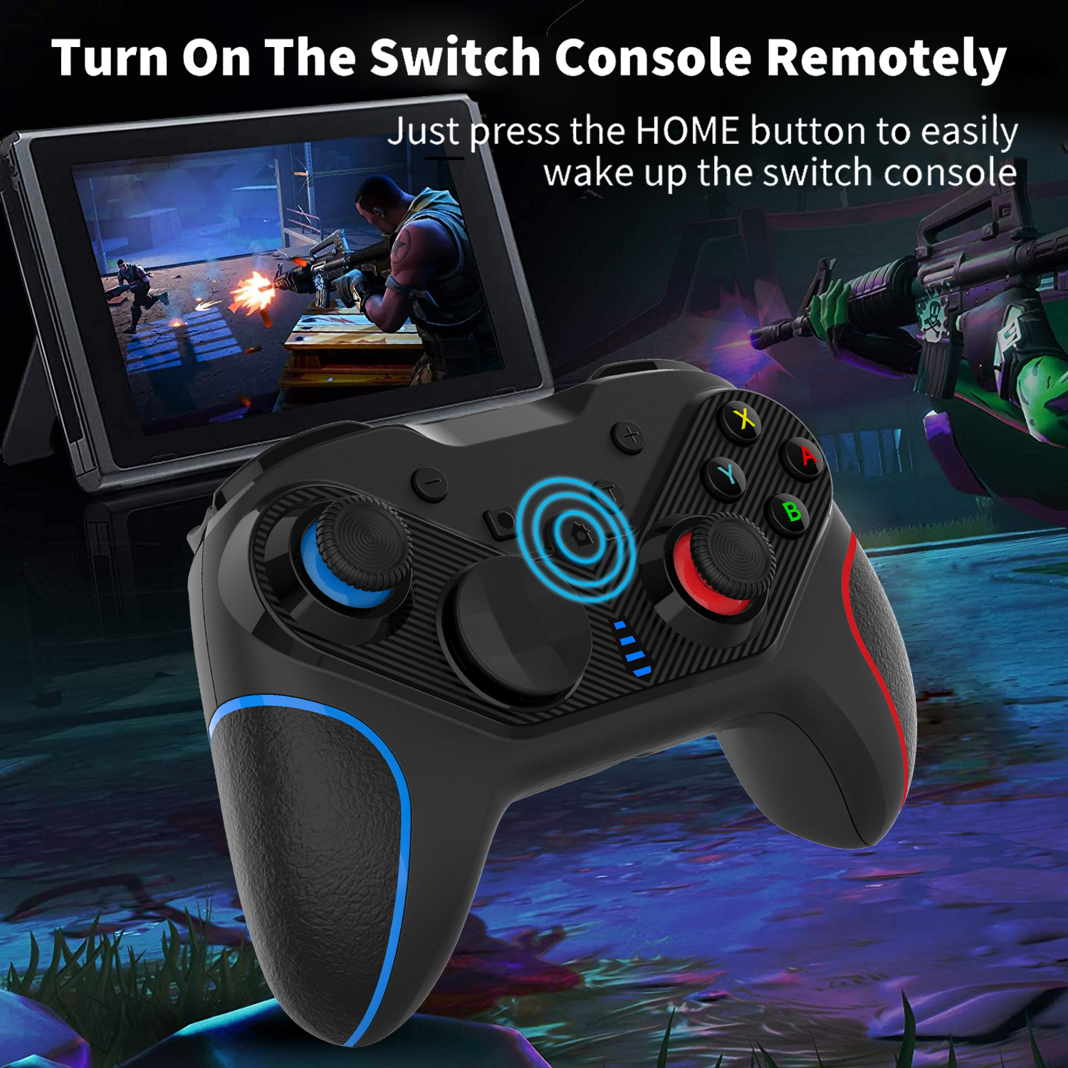 Features: Compatible with N-Switch/computer (STEAM)/iOS (MFI)/Android (HID), etc., supports one-key wake-up of the Switch host, has a six-axis gyroscope function, somatosensory games are more fun, dual-motor vibration intensity can be adjusted at will, Button burst Turbo, automatic burst AUTO function, USB wired connection to the Switch host can use 3.5mm headset, comes with four programmable buttons, move faster, high-sensitivity joystick and buttons, bring you an excellent game Experience, you can change the height of the joystick according to your habits, replace the wheel steering button, use advanced BT4.0 wireless technology, easy to connect and use, ergonomic design and comfortable grip;
