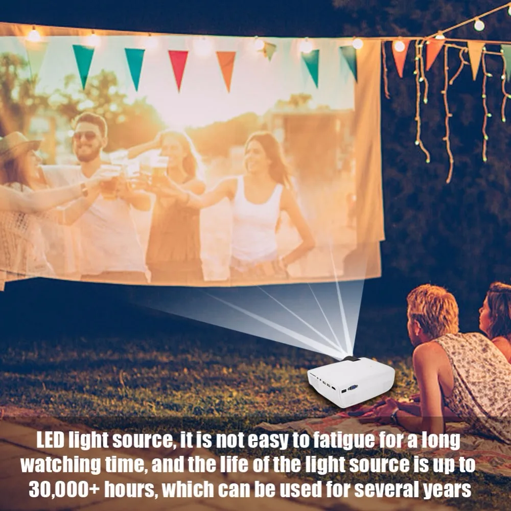 Mini Projector 1280x1080 Resolution Portable Movie Projector with LED Lamp Compatible with HDMI, SD, AV and USB - White