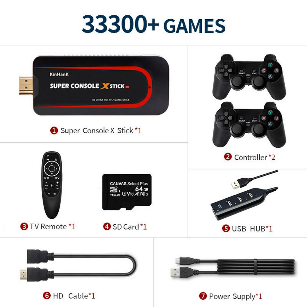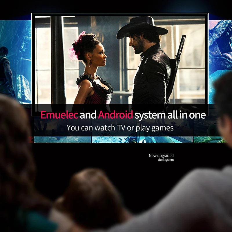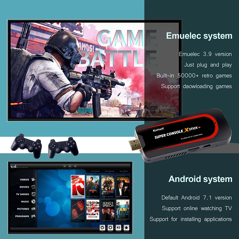 Super console x stick is a video game console that integrates Android 7.1 and Emuelec 3.9 systems. Not only is it pre-installed with a large number of retro games, you can play games with your family and friends, and you can also watch video, audio and video.