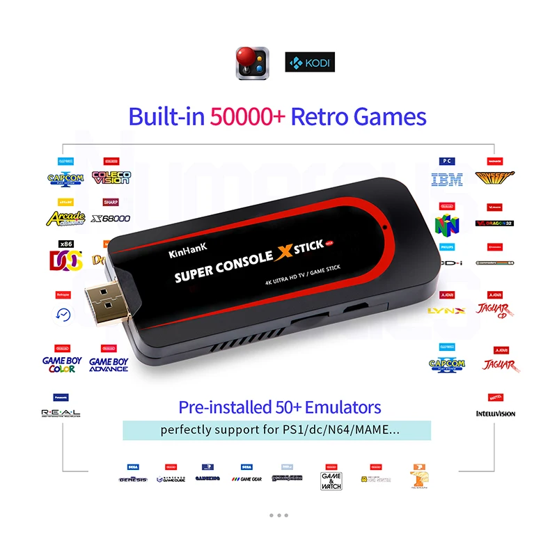 ●Upgrade S905X chip ●TV and game systems are integrated. ●Built-in 50000+ retro games, can run ●PS1/DC/N64/C64 perfectly ●Can support KODI, can watch global TV programs for free ●Support online downloading of games, you can add games by yourself