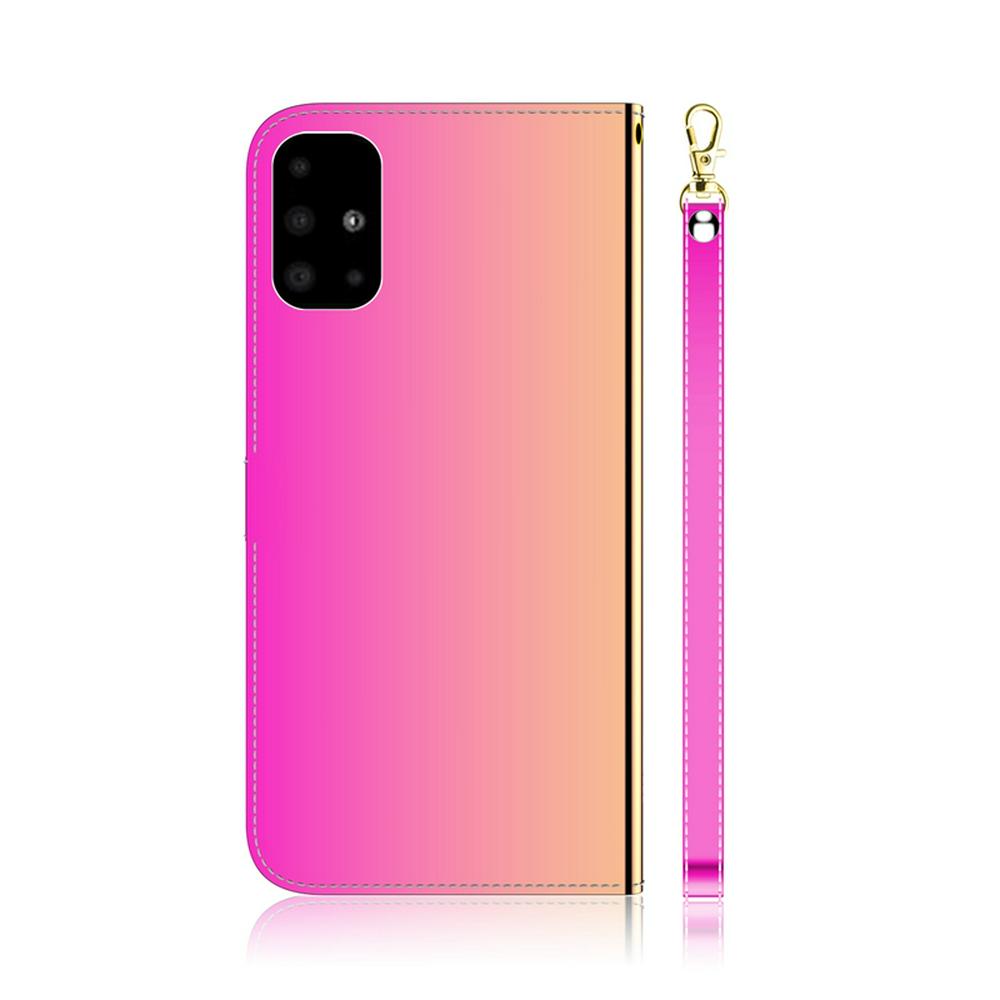 Mirror Surface Imitation Wrist Strap Style Shockproof Side Flip PU Leather + Soft TPU Card Slots with Magnetic Buckle and Stand Wallet Case for Samsung Galaxy A51