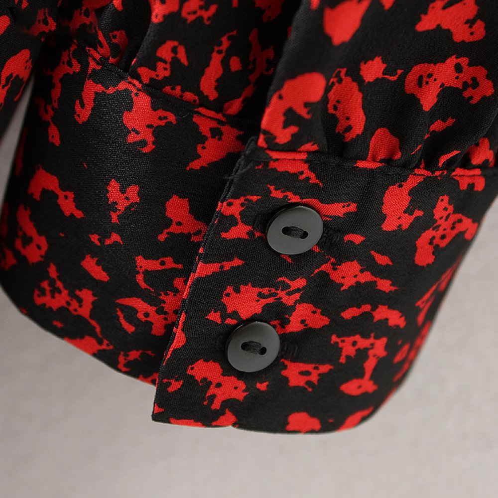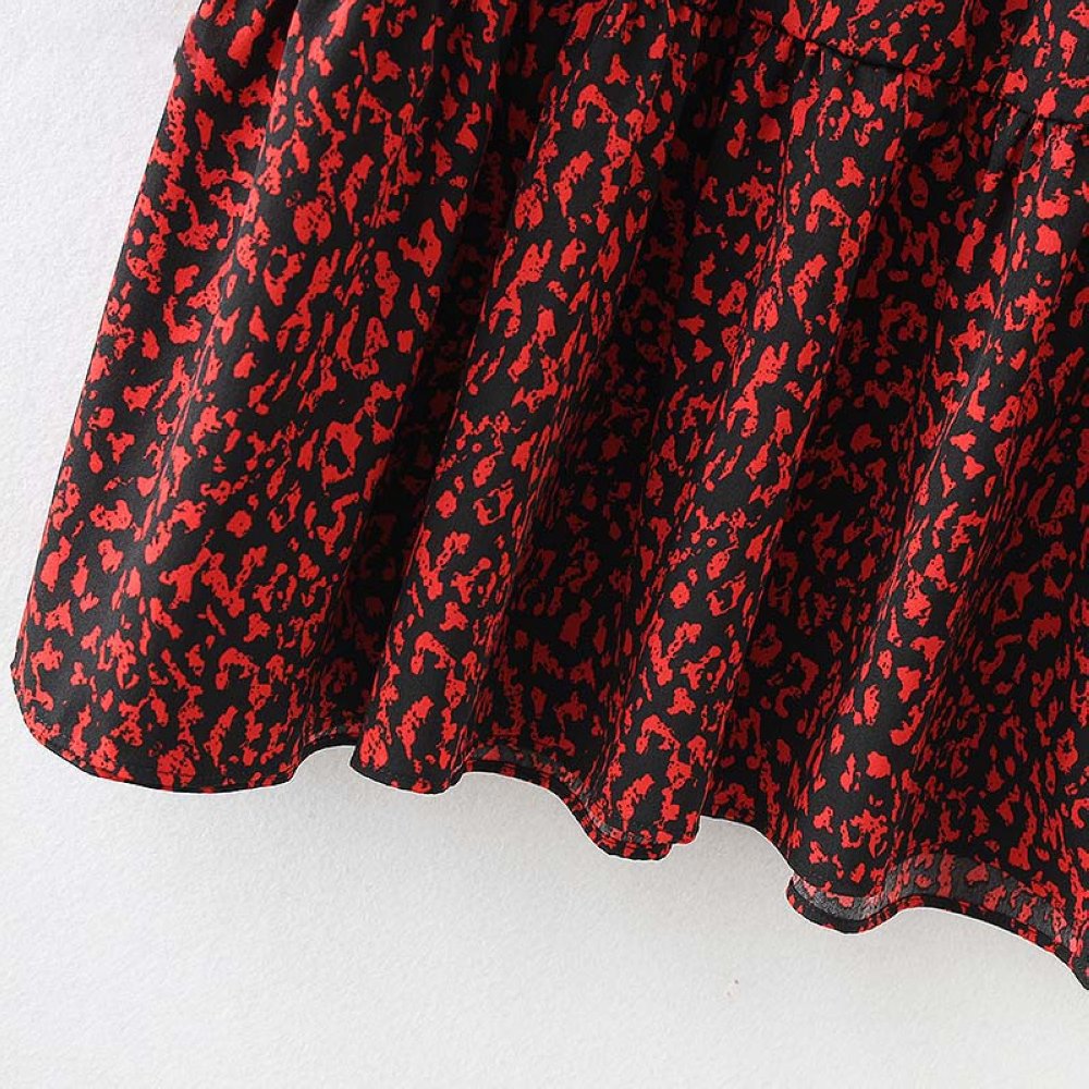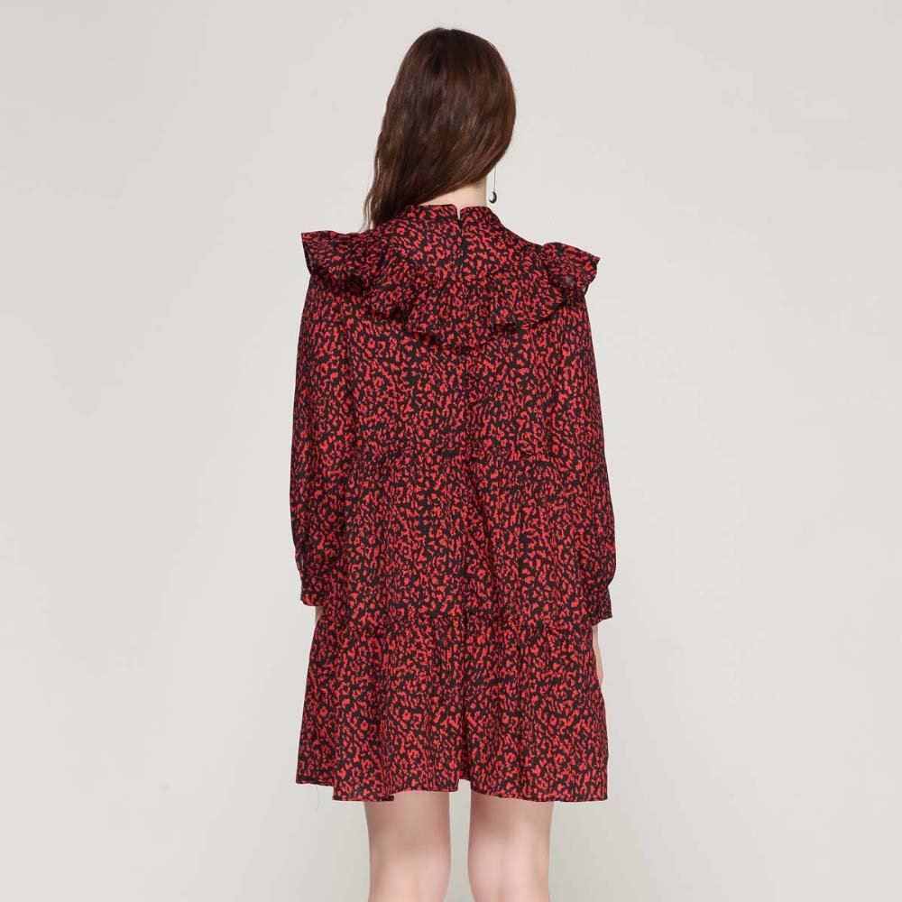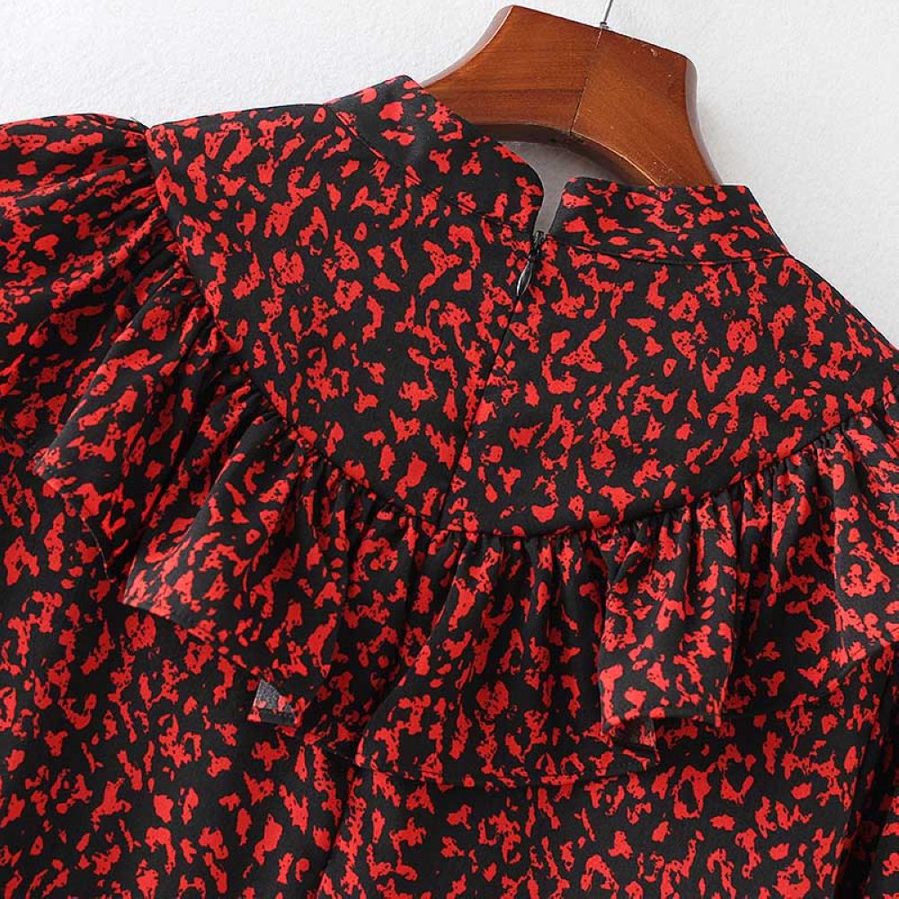 M/L Size OYK8636 Women Vintage Leopard Pattern Sweet Ruffles Long Sleeve O-Neck Pleated Casual Straight Dress