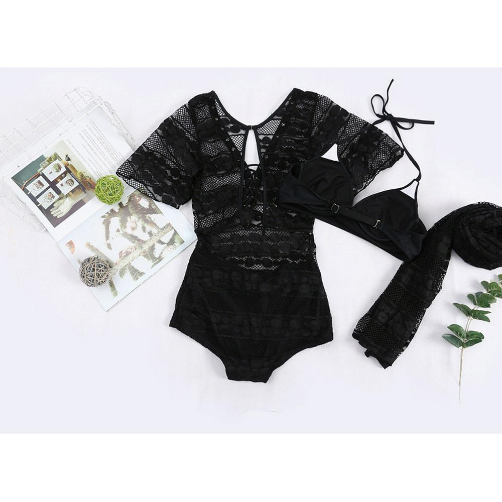 M/L/XL Size Fashion Summer Lace Hollow Sexy Female Flat-Angle Tight Swimsuits Three-Piece Set for Holiday Hot Spring Beach
