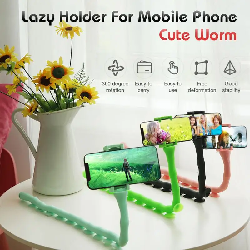 - Made of high-density rubber, the lazy phone bracket is flexible and durable, not easy to damage. Designed with the appearance of cute cartoon worms, the multifunctional lazy phone bracket is super cute and special.
