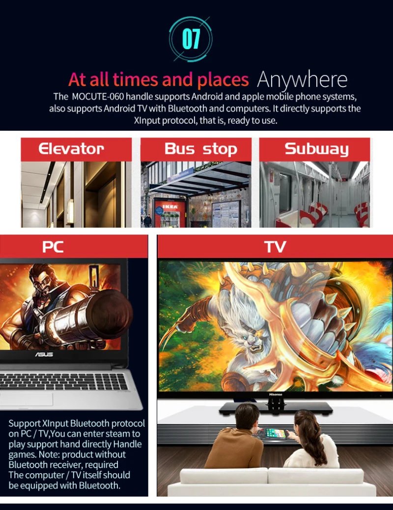 Made of high quality material, very durable. Ergonomics design for comfortable and enjoyable play. Support Android 3.2 above, IOS 7.0-9.2 and for Windows operate sysytem and so on.