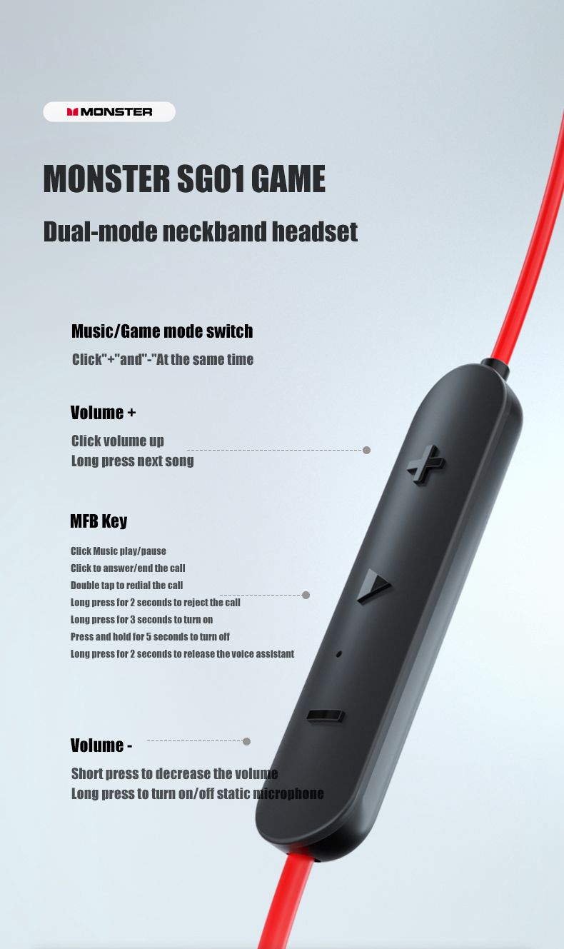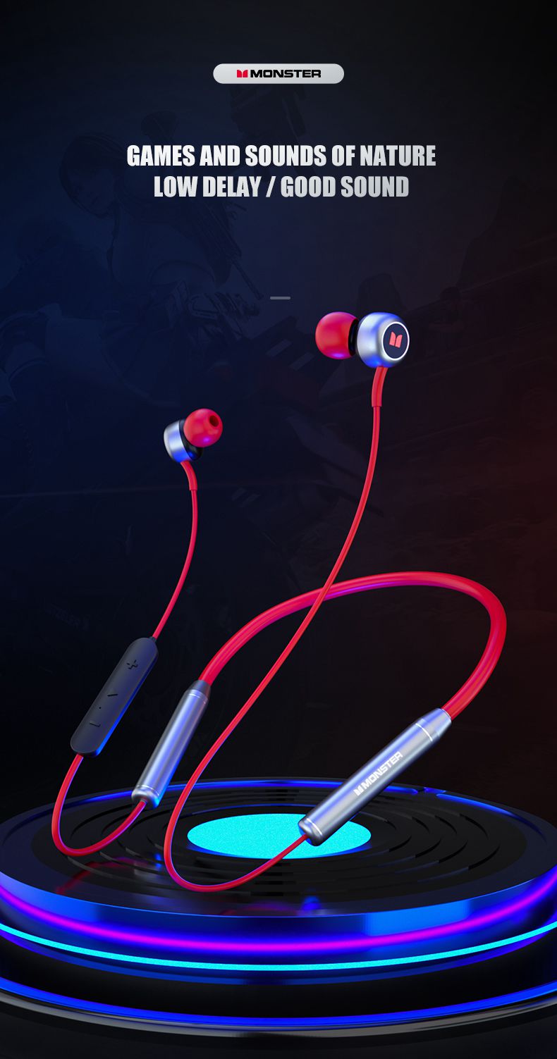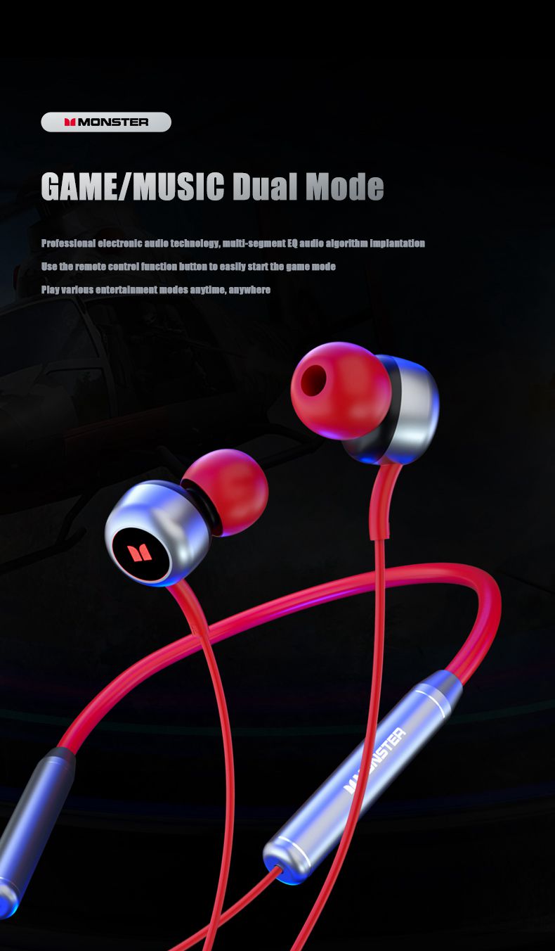 Monster SG01 Wireless Neckband Earphones Music Gaming Dual Mode HiFi Stereo Sport Bluetooth-Compatible Earbud with Mic