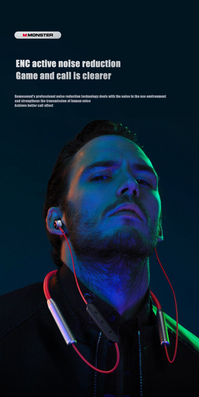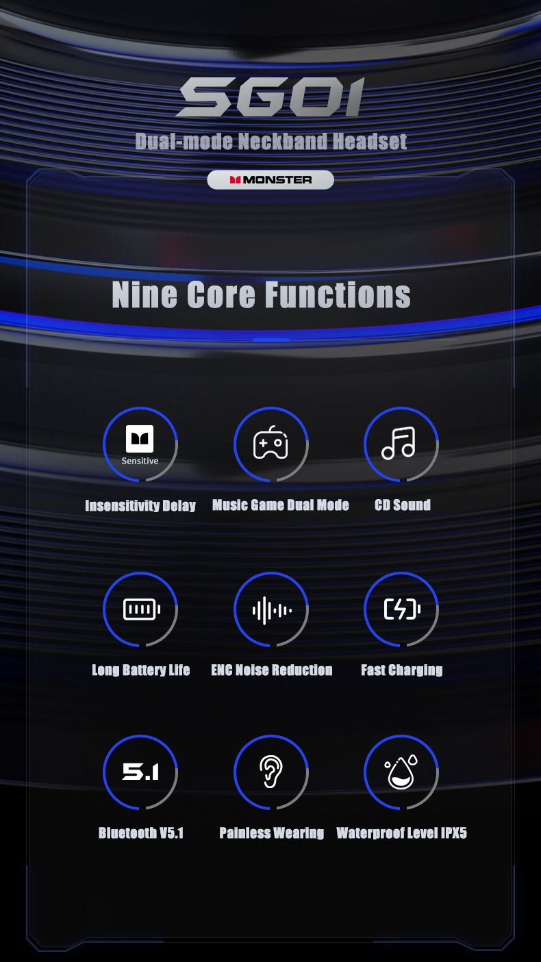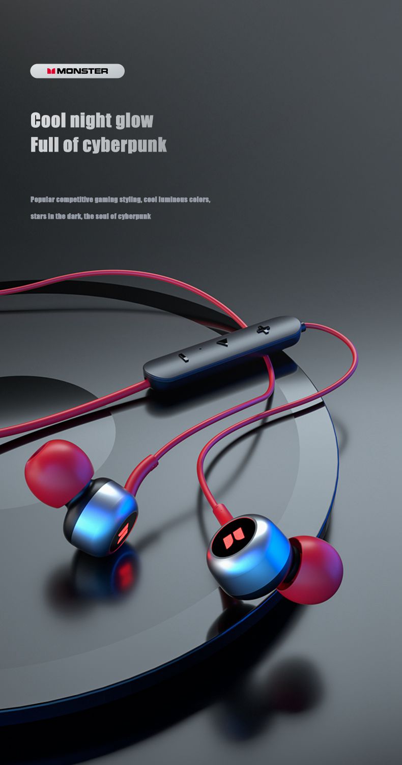 Monster SG01 Wireless Neckband Earphones Music Gaming Dual Mode HiFi Stereo Sport Bluetooth-Compatible Earbud with Mic