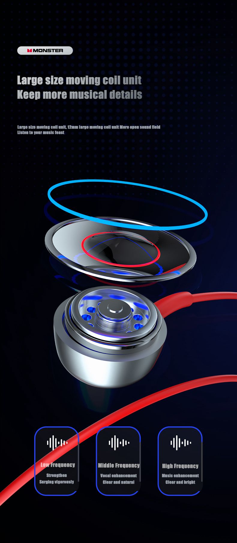 2.Large size moving coil unit, 12mm large moving coil unit with a wider sound field, listen to your music feast.