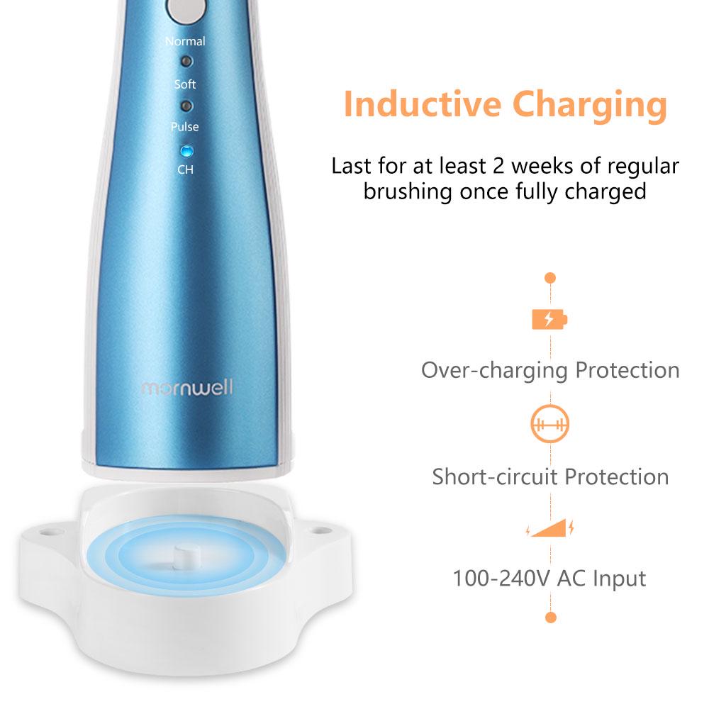 Inductive charging, Built-in Li-ion rechargeable battery make sure longer battery life. After charging for 24 hours, this dental water flosser can last up to 2 weeks (two minutes every time, twice a day).