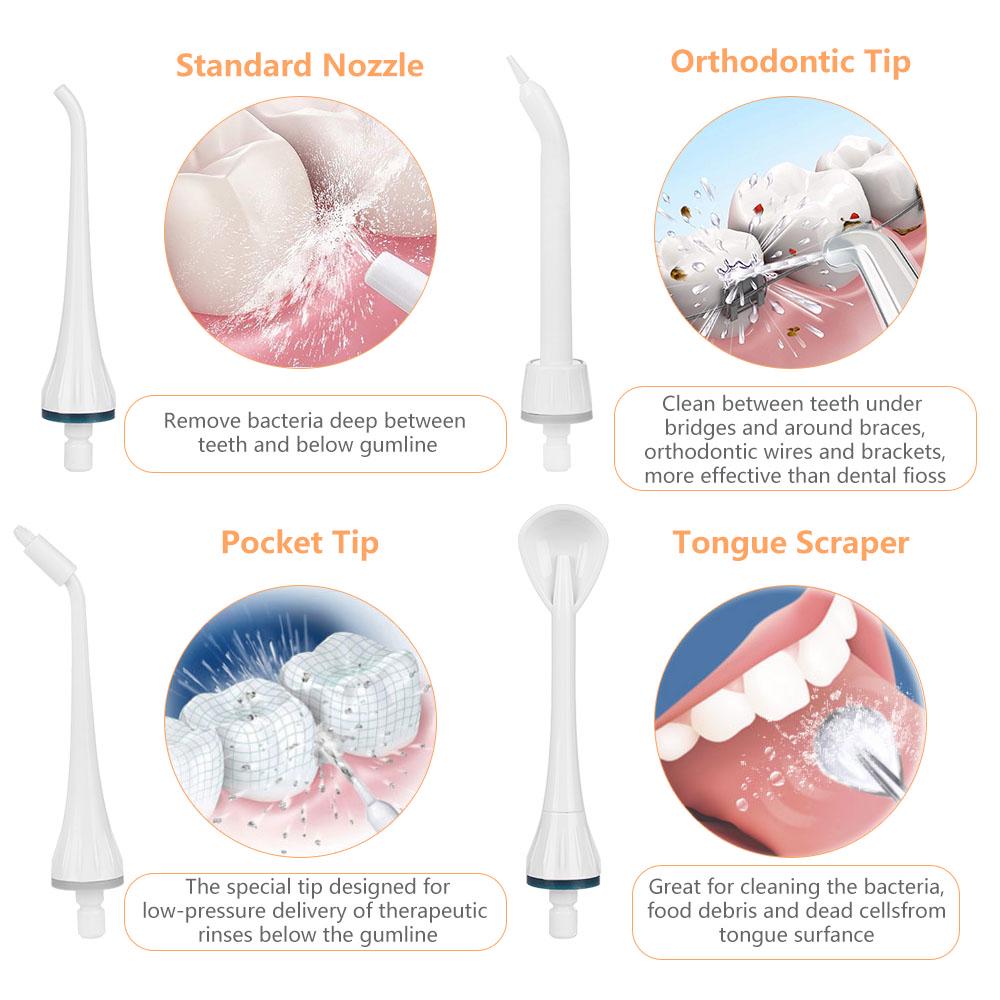 Water pressure from 40 to 90 PSI with 1400 pulses per minute, helps to keep your teeth clean more effectively.