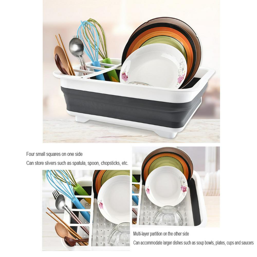 Multifunctional Foldable Tableware Storage Drain Dish Rack for Kitchen