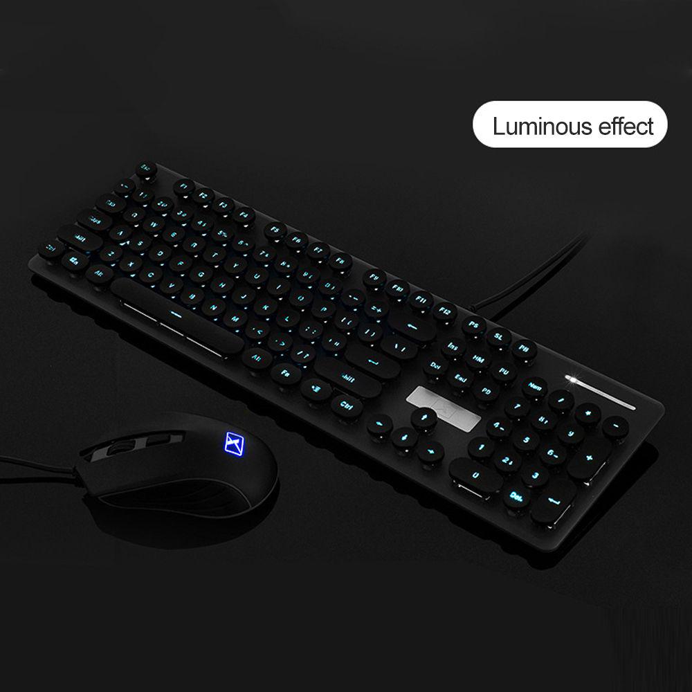 N518 Wired Steampunk Retro Round Keycap 4-color Dazzle Cool Backlight Game Keyboard Mouse Set
