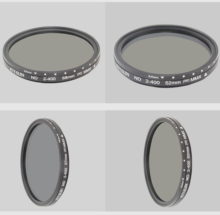 The outer ring of this rotating filter can adjust the gray scale arbitrarily, which can be adjusted from ND2 to ND4 and then to ND8 until adjusted
