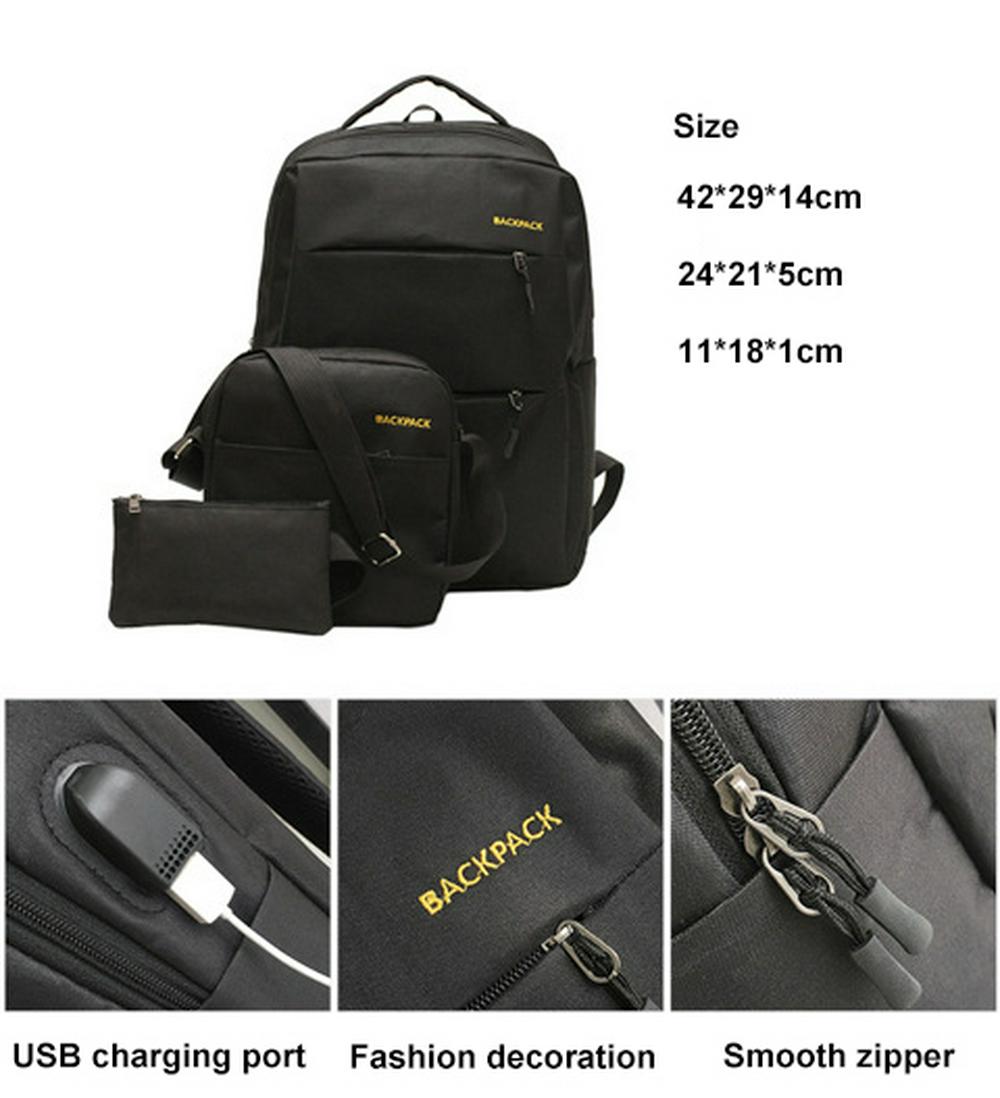 New Casual Backpack for Men and Women Three-piece Set Outdoor Travel Laptop Bag