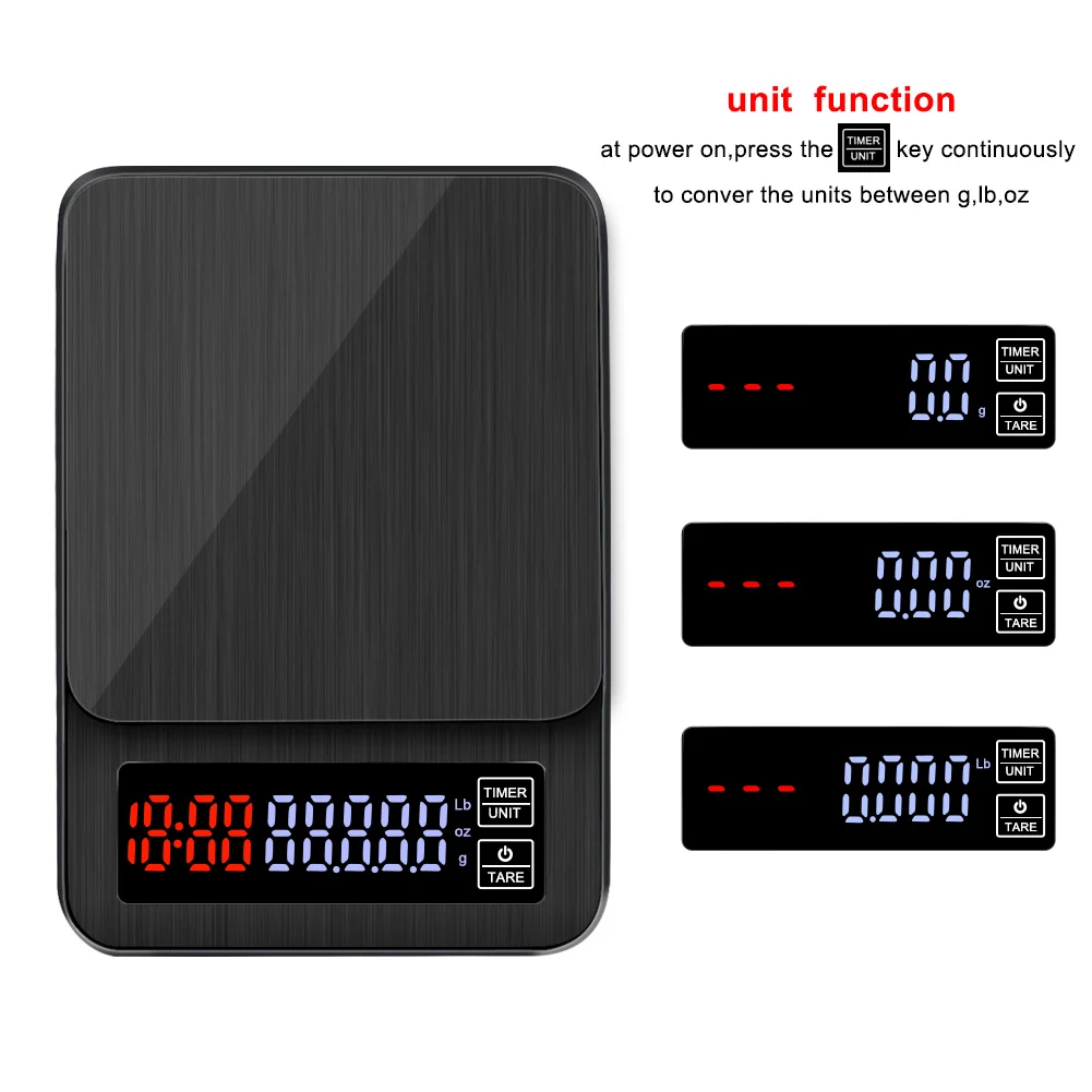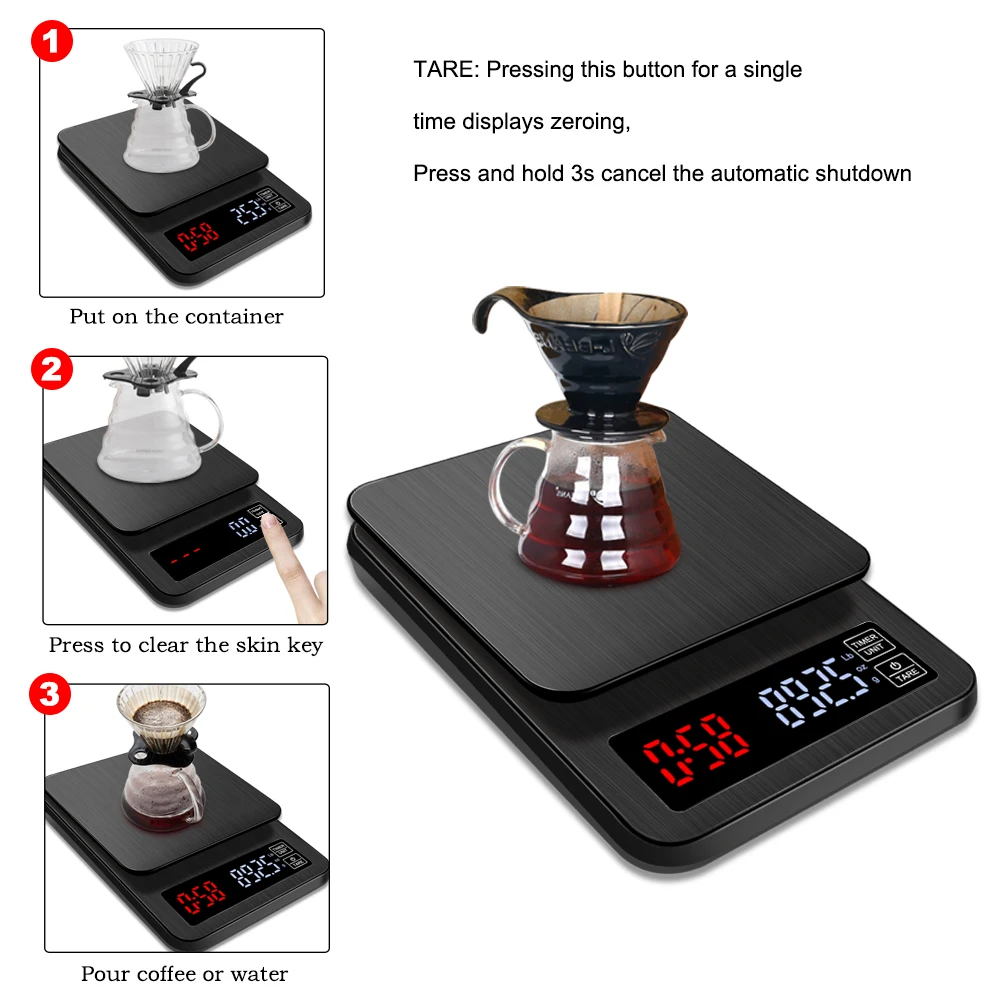 1, For the scale of the hand-washed coffee scale and the scale of the kitchen scale 2, LCD display, readings clear, and include timing functions, low power reminding and overloading reminding 3, 4 units conversion: g, oz, lb, ml, or g/ml 4, 4 kinds of function key: ON/OFF, TARE, UNITS, START/STOP If you install a new battery, it can not be displayed, please check the type of battery, replace some low-voltage batteries, see if you can use, if not, please contact customer service