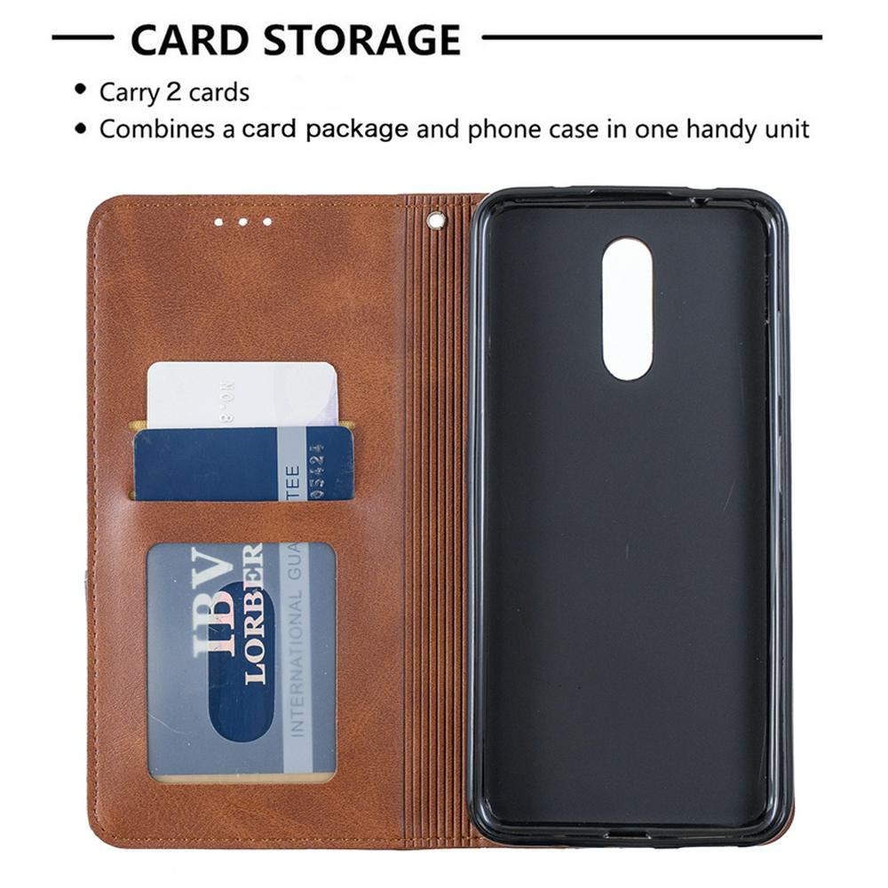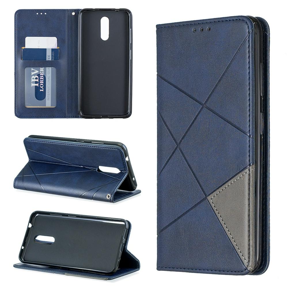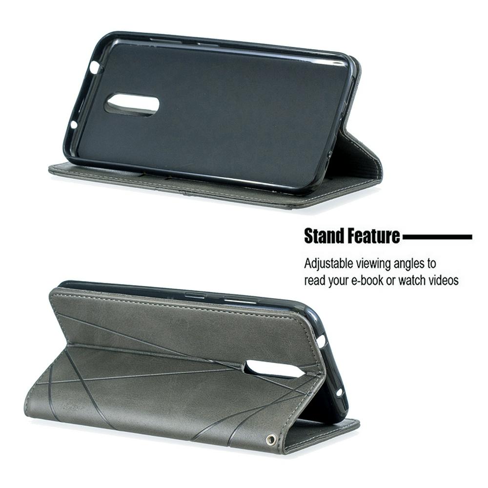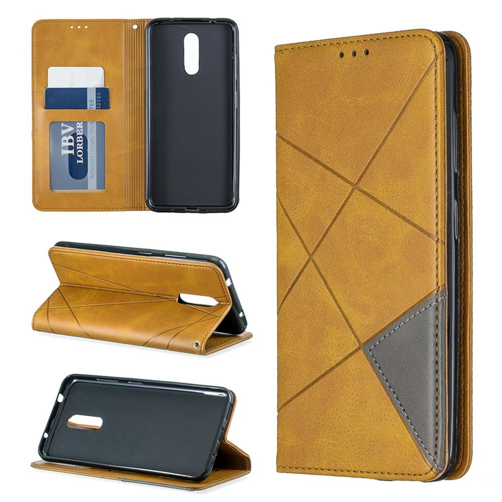 Nokia 3.2 PU+TPU Clamshell Phone Case Geometric Mosaic Pattern Retro Simple Solid Color Style Leather Phone Case