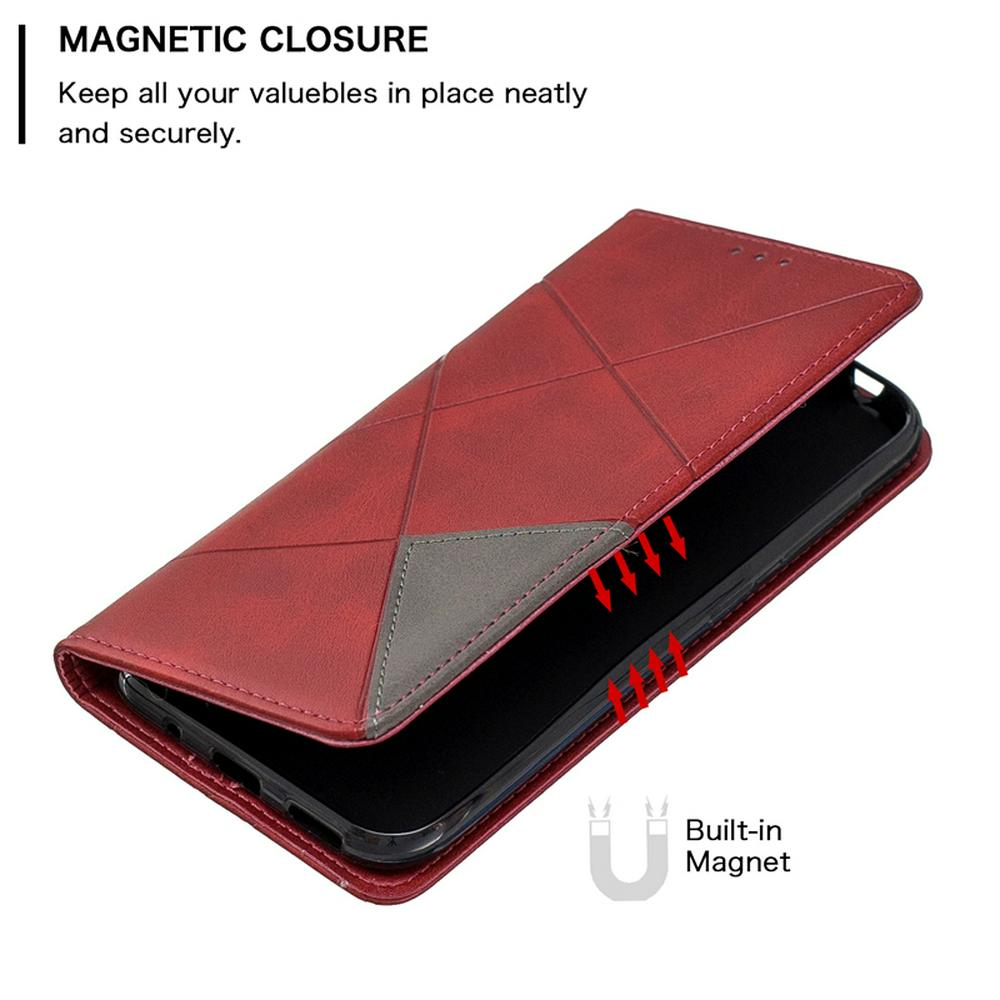 Nokia 4.2 PU+TPU Clamshell Phone Case Geometric Mosaic Pattern Retro Simple Solid Color Style Leather Phone Case