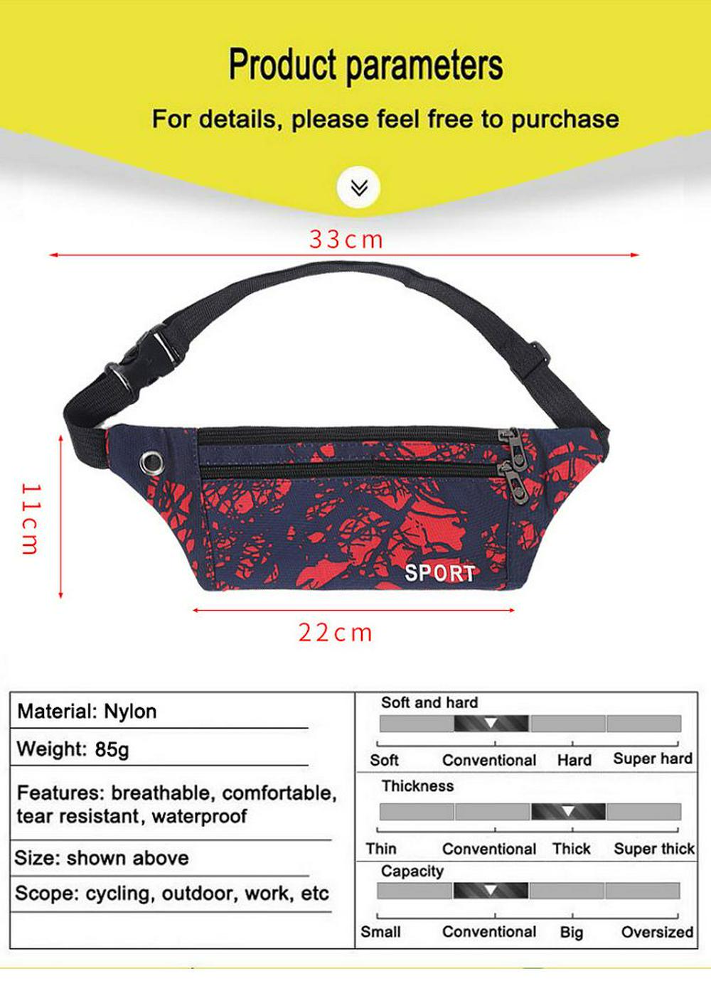 Nylon Purse Fashion Casual Men's Chest Bag Running Hiking Pockets Waist Bag