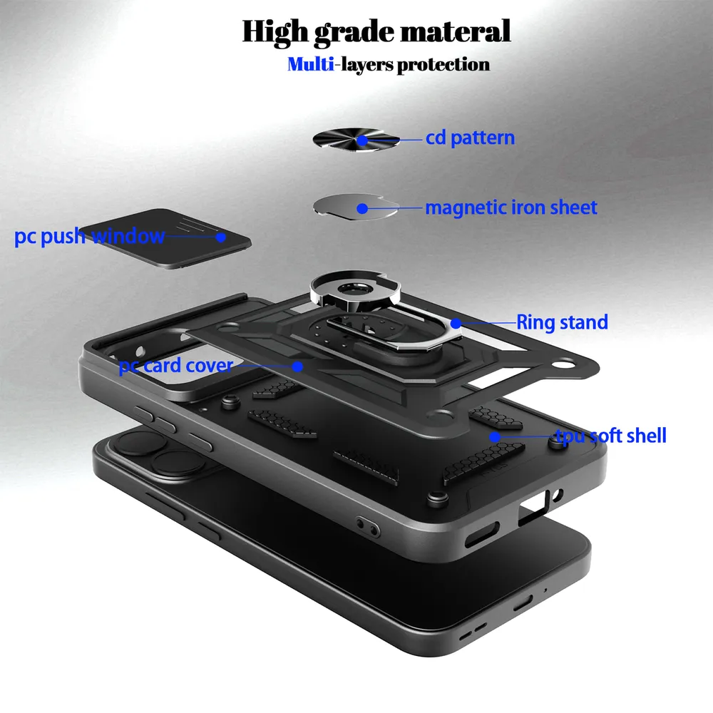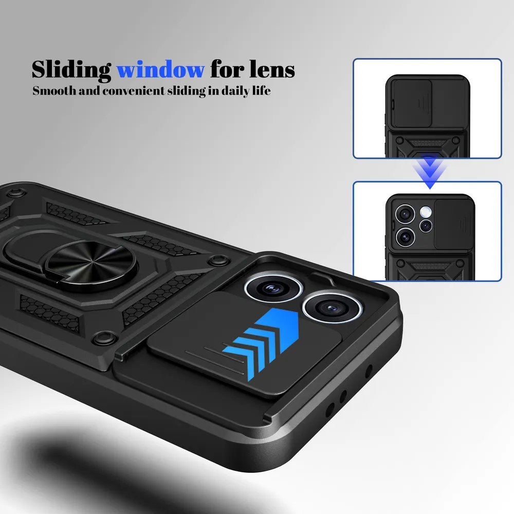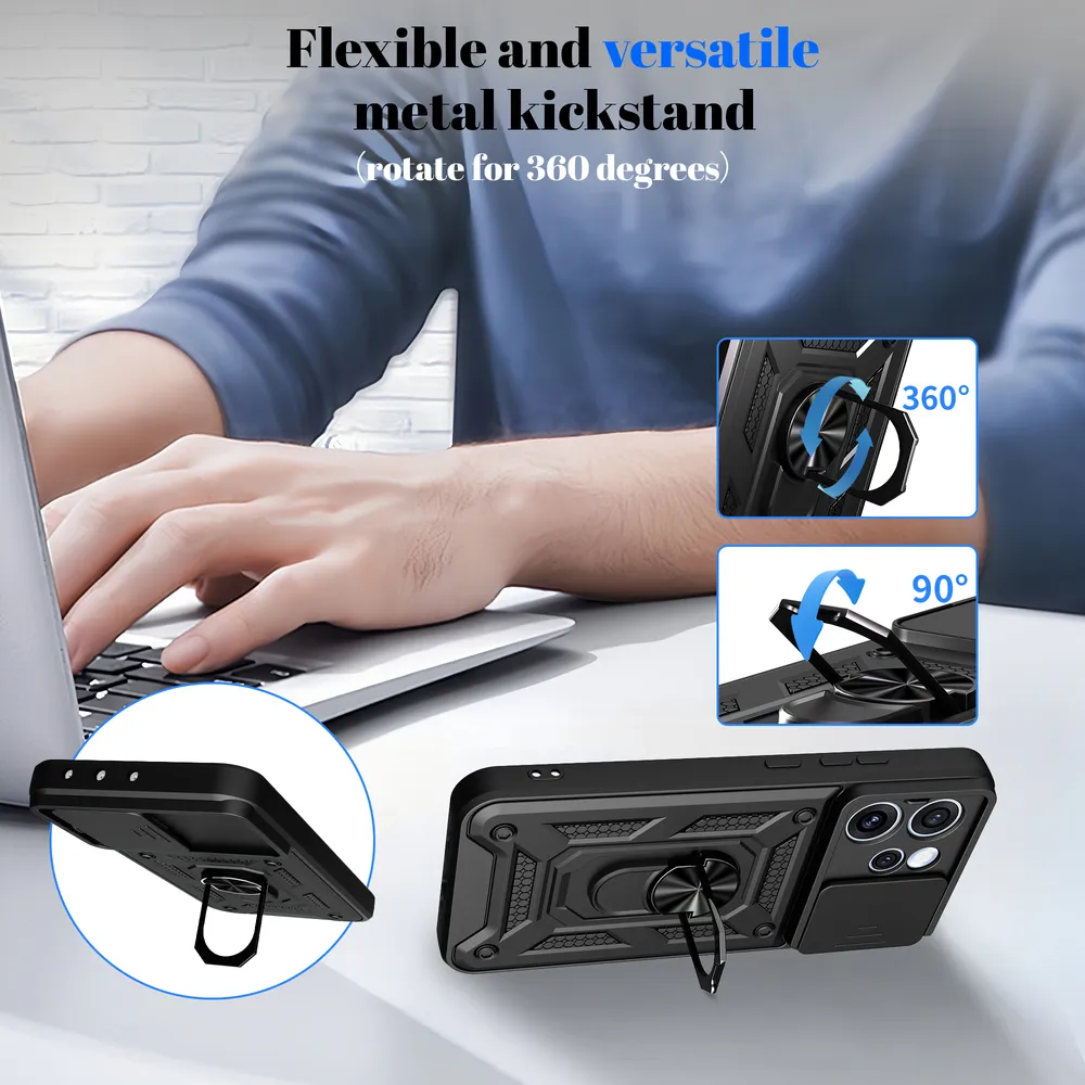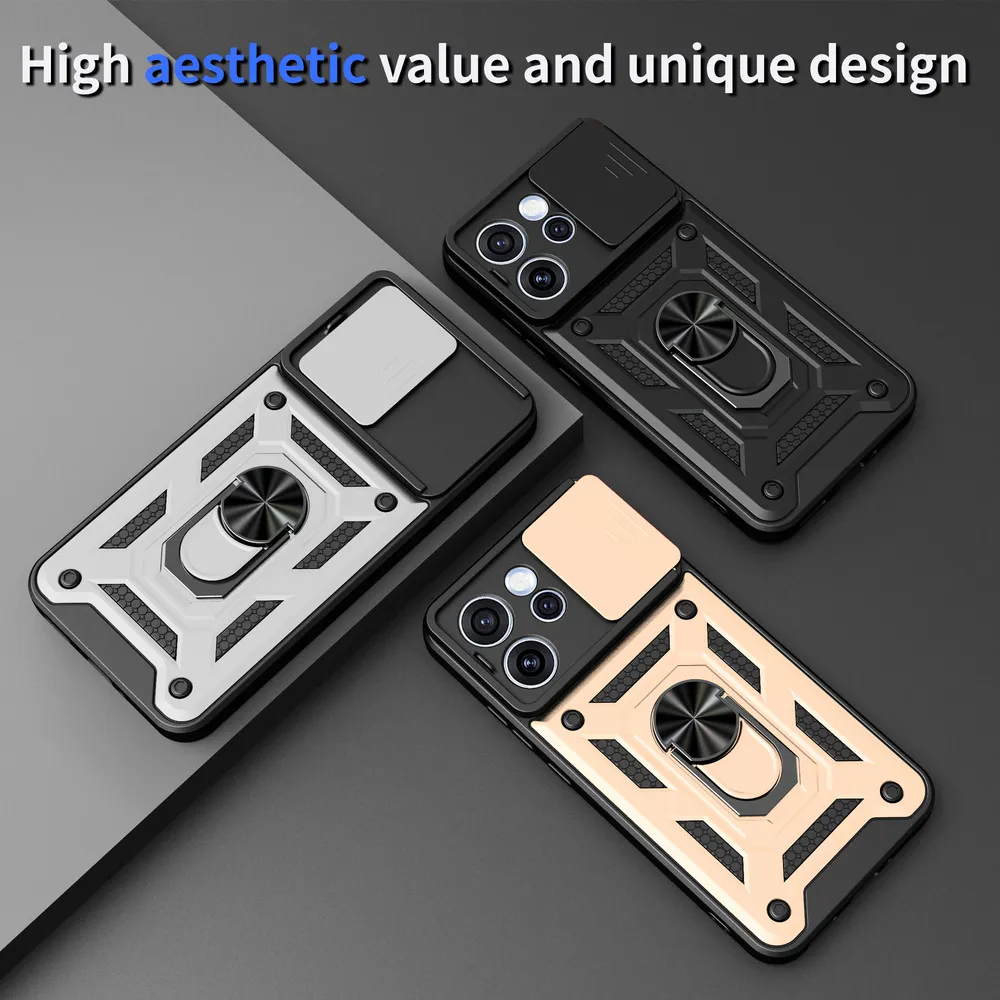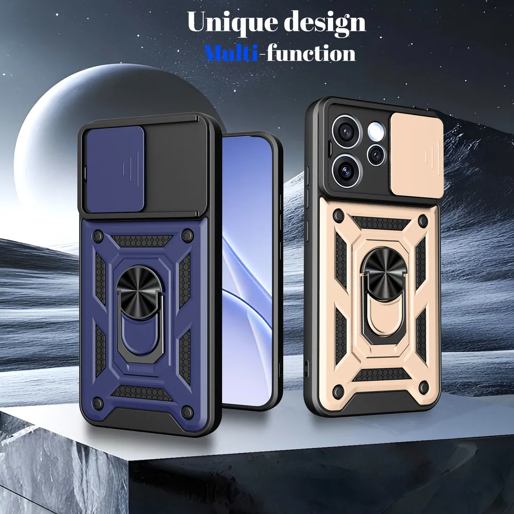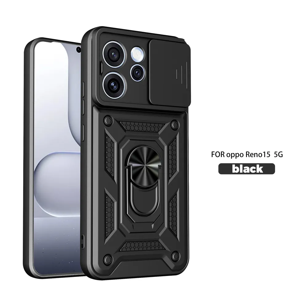 OPPO Reno 15 5G Ring Holder Kickstand Camera Slide Cover Design PC + TPU Phone Back Cover Case