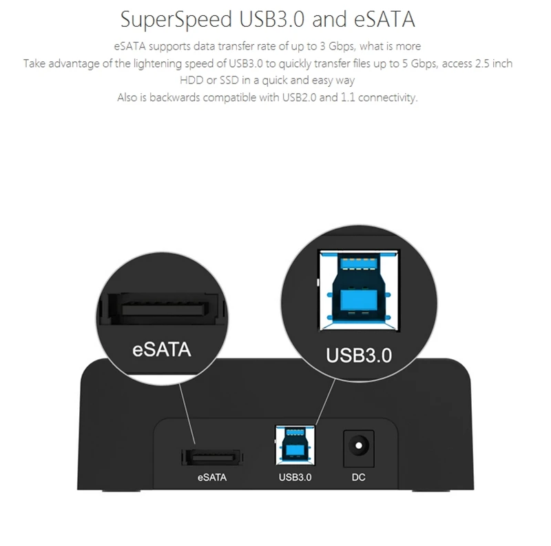 6. Product interface: USB3.0 Type-B+ESATA.