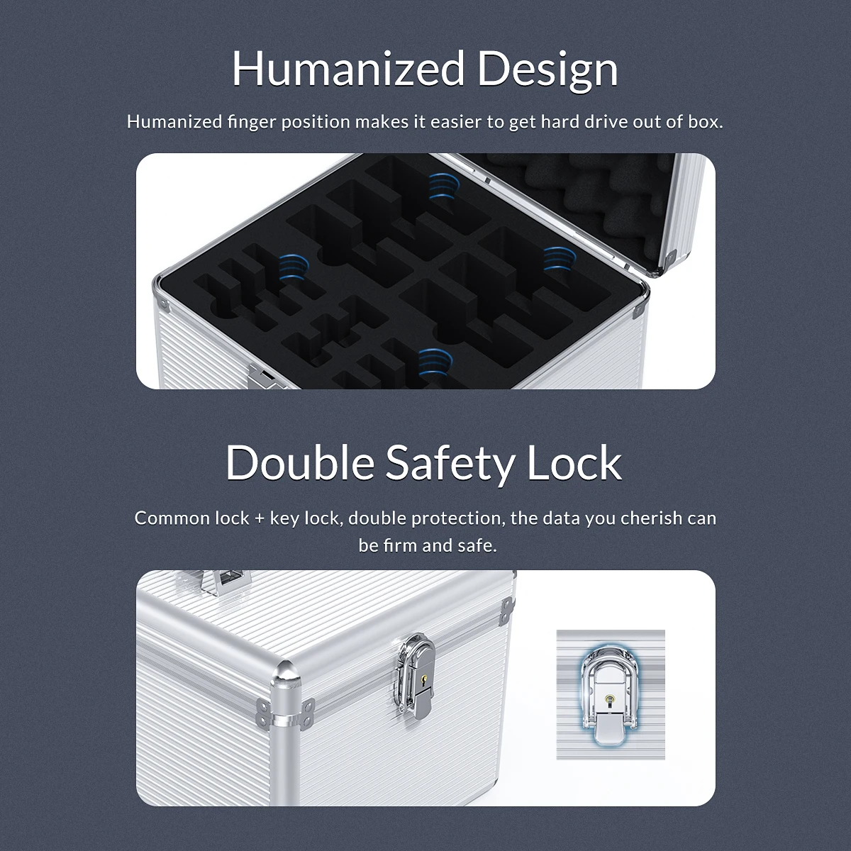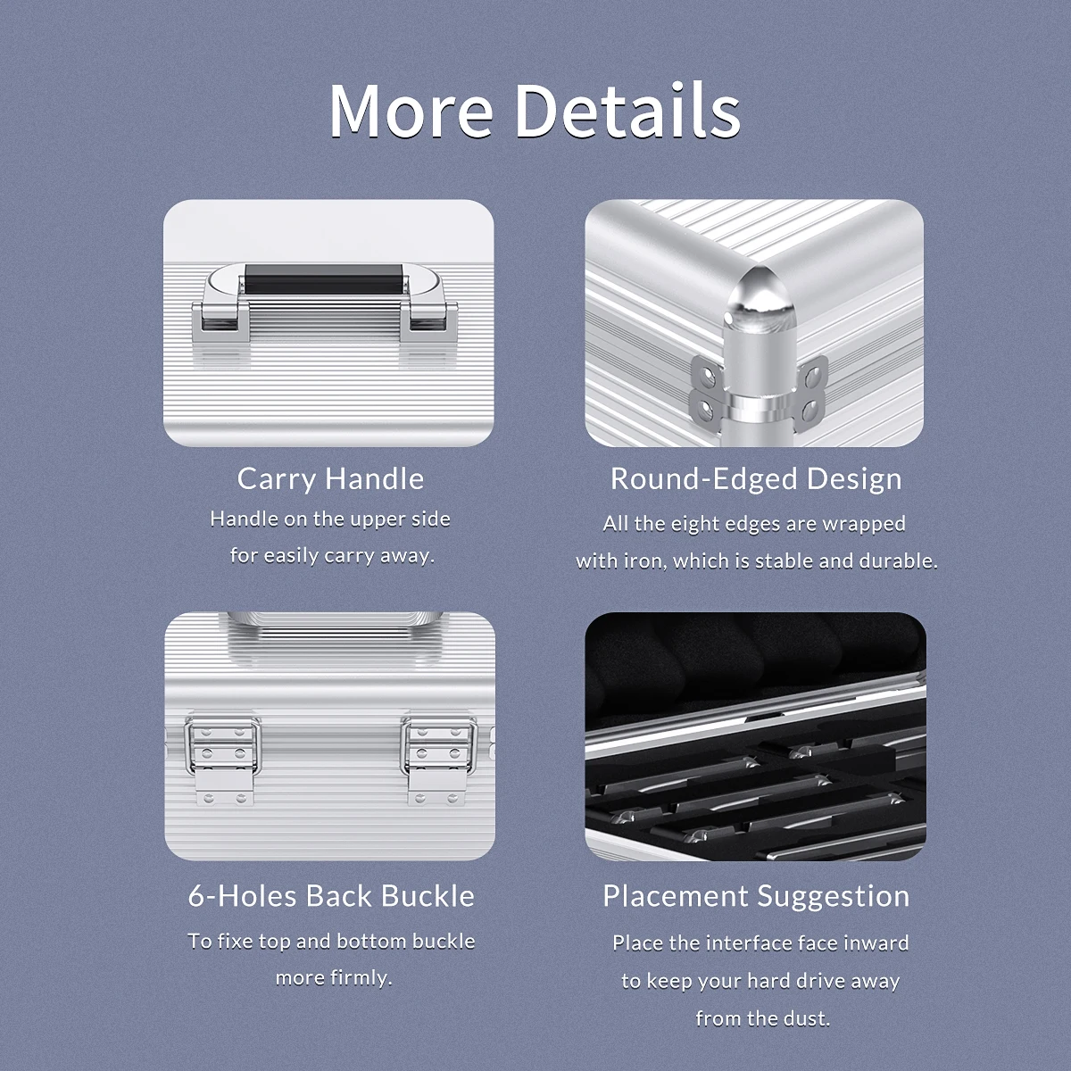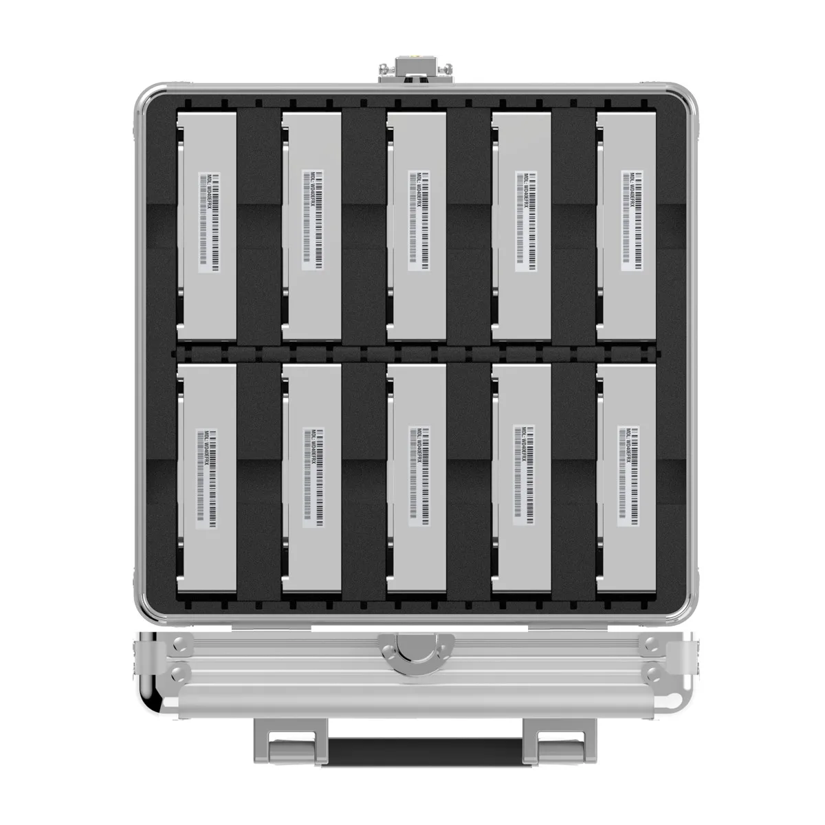 3.5 inch Aluminum Alloy Hard Drive Protection Box Model:ORICO BSC35-10 Product Material:Aluminum Alloy / Internal EVA Product Color:Silver Protected Space:10 Pcs / HDD Product Size:246 * 236 * 200mm Product Weight:1.85kg Internal Protection:EVA Built-in Cushioning Sponge / Fully Enclosed Design Product Handle:American-Style Handle / Material Aluminum Alloy / Rubber Edging At The Bottom of The Handle Security Protection:Double Lock Design (Lock Buckle + Key Lock) Applicable Hard Disk:2.5 / 3.5 inch Mechanical Hard Disk, SSD Solid State Hard Disk Edge Fixing:Six-Hole Back Buckle, 8 Corners of The Box Plus Iron Corners Surface Treatment:ABS Silver Stripes