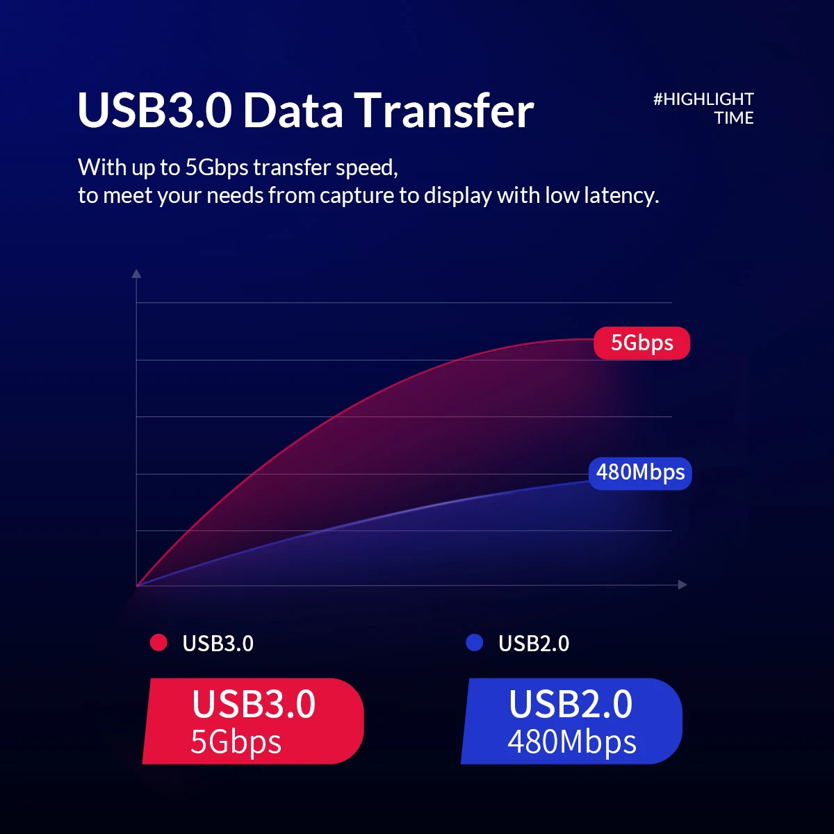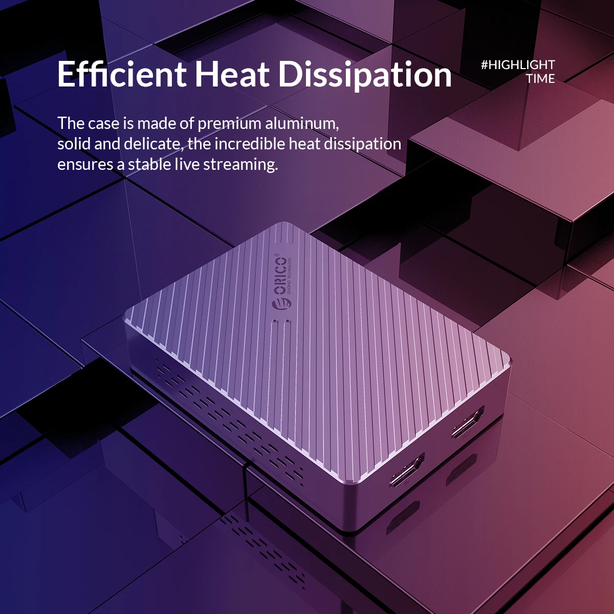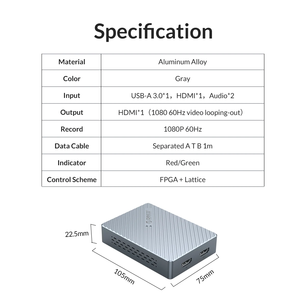 ORICO HVC-1080 is a video capture card that supports one 4K video input, two audio capture and one 1080P video loop outpu