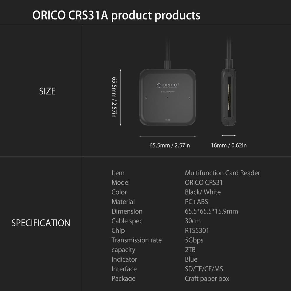 ORICO CRS31A 4 in 1 USB 3.0 Flash Multi Memory Card Reader for TF / SD / MS / CF 4 Write Simultaneously