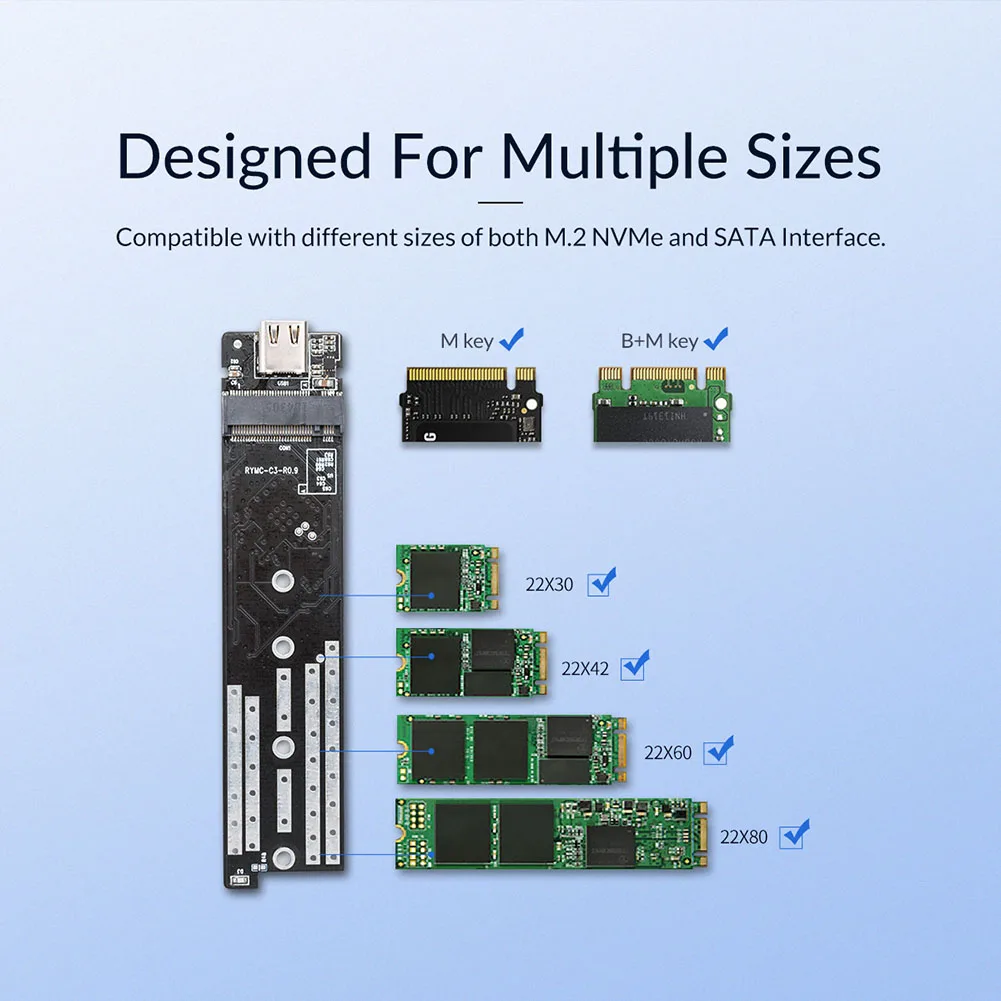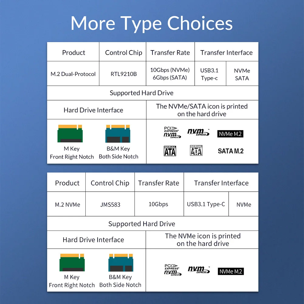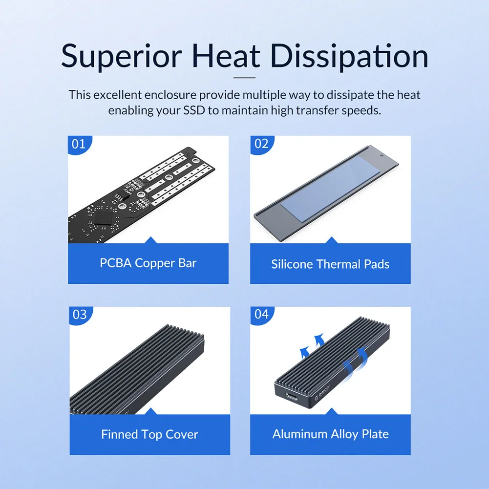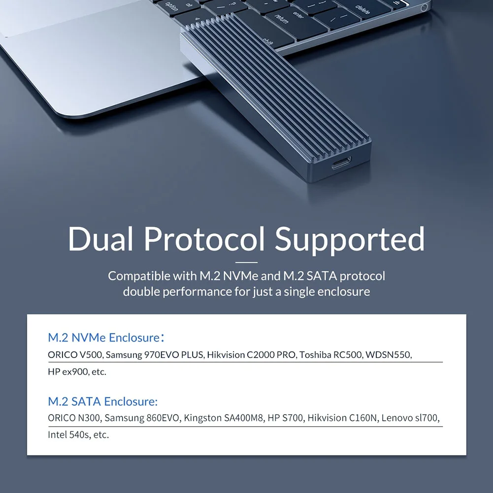 ORICO M2PJM-C3 SSD Enclosure M.2 NVMe/SATA Mobile Hard Drive Case External SSD Box Support 2TB for Windows Mac Linux