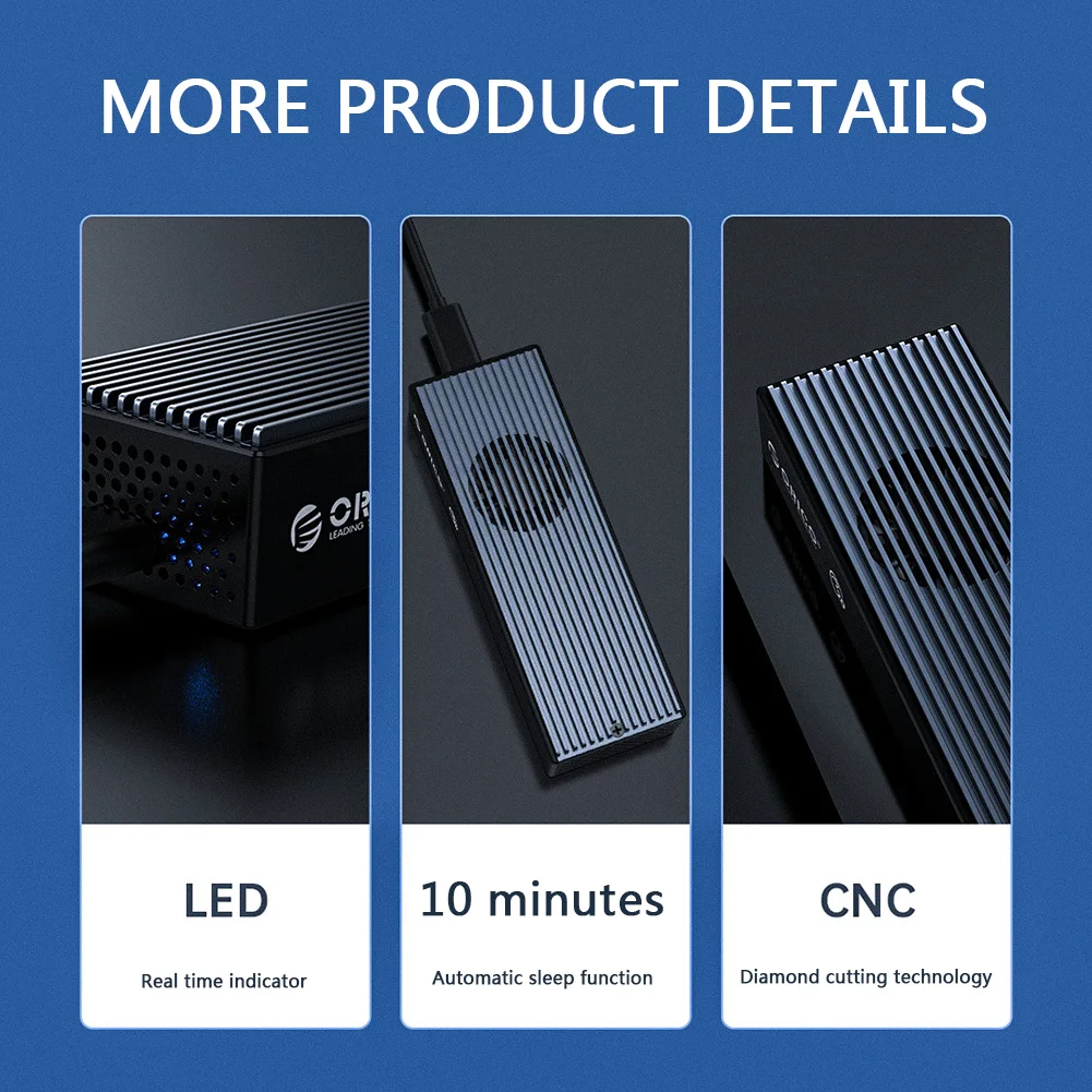ORICO M2PVC3-G20 USB3.2 GEN2x2 M.2 SSD Enclosure Cooling Fan 20Gbps NVMe Type-C Hard Drive Adapter Mobile Case Box