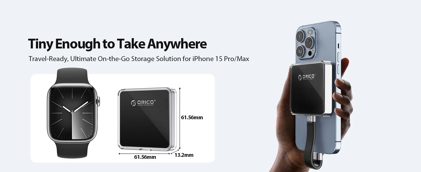 Equipped with a powerful magnetic system, this enclosure securely attaches to iPhone 15 and similar devices, providing a stable and reliable connection for instant storage expansion.