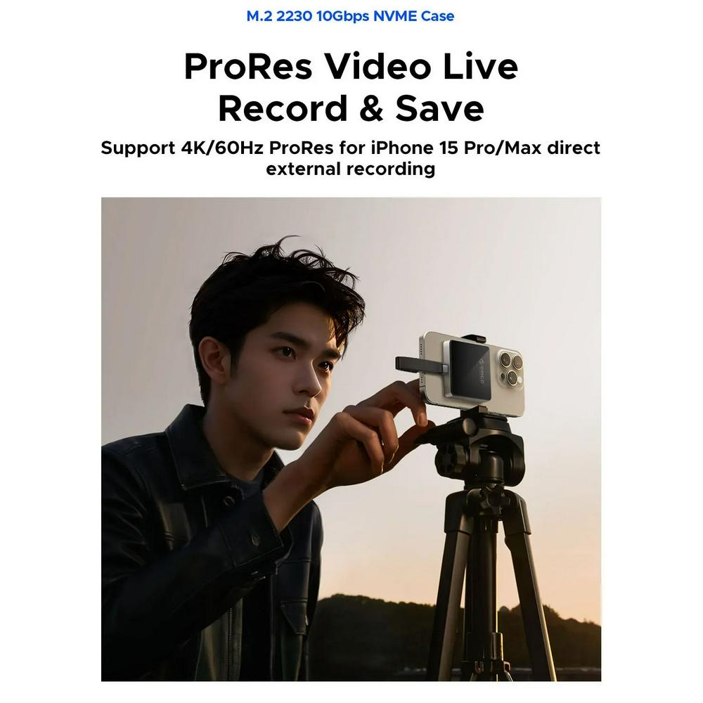 Support 4K/60Hz ProRes for iPhone 15 Pro/Max direct external recording.capture and store high-quality ProRes HDR videos directly onto the SSD, bypassing internal storage limitations and ensuring smooth, professional-grade video production.