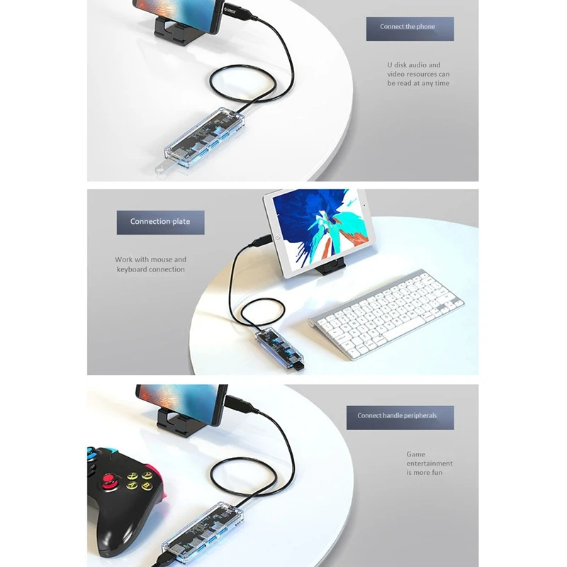 Support multi-device use, more possibilities for connection; Connect to mobile phone: U disk o and video resources, read at any time; Connect to tablet: Keyboard and mouse connection, handy office; Connect handle peripherals: game entertainment, more fun.