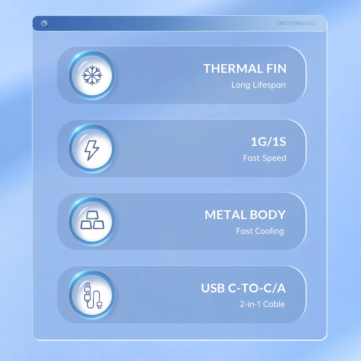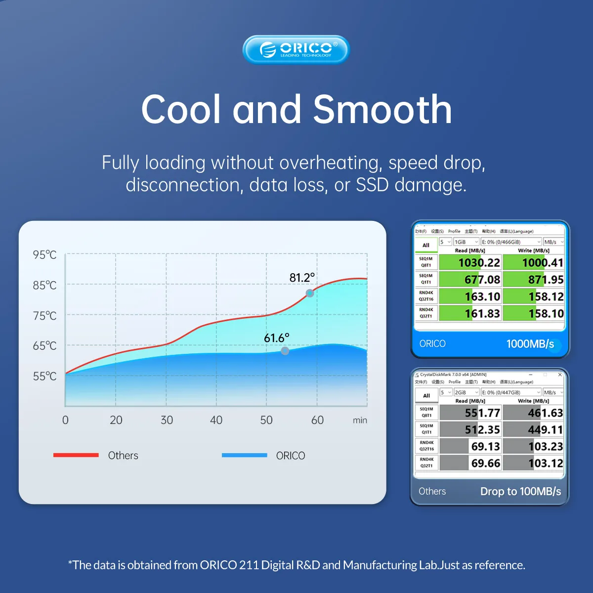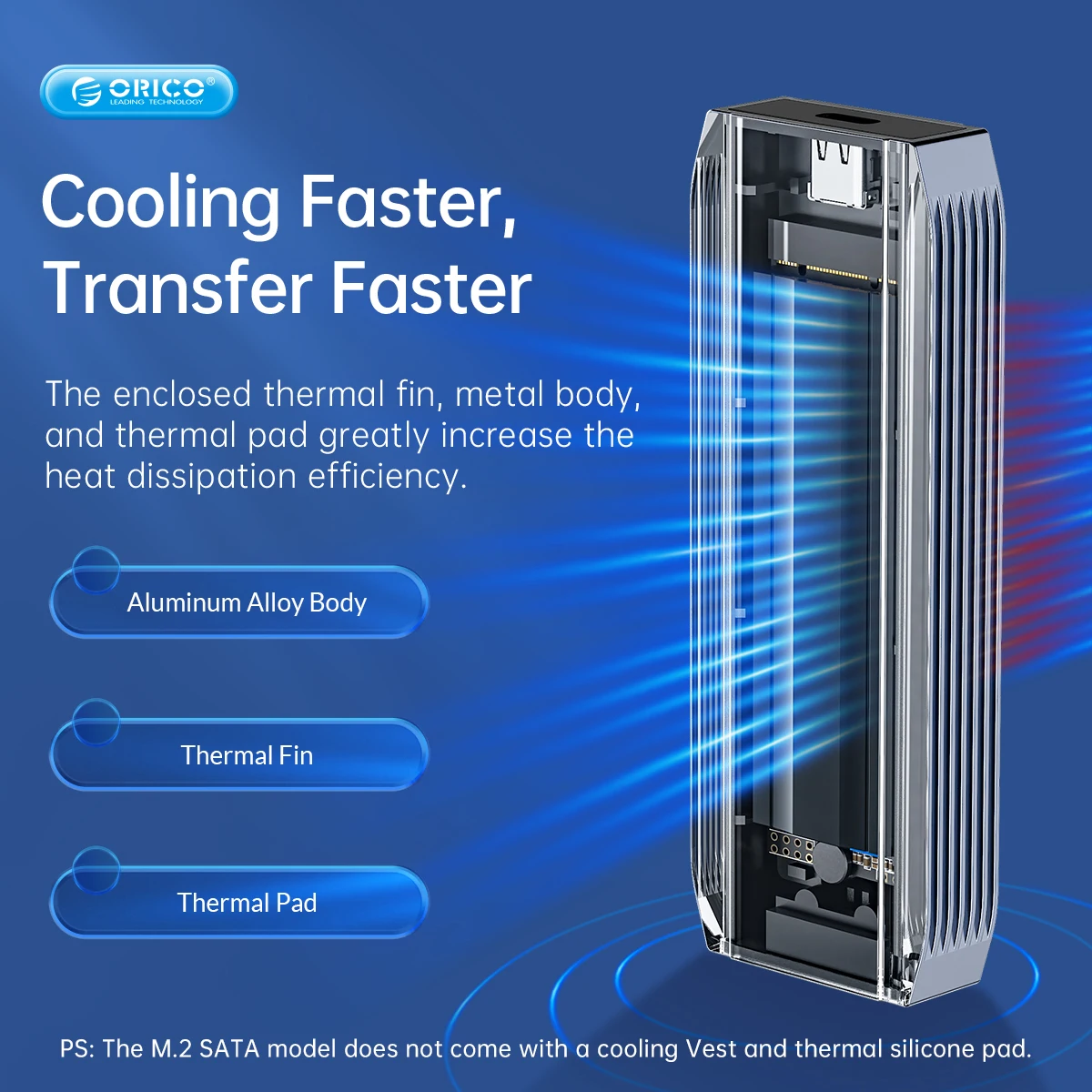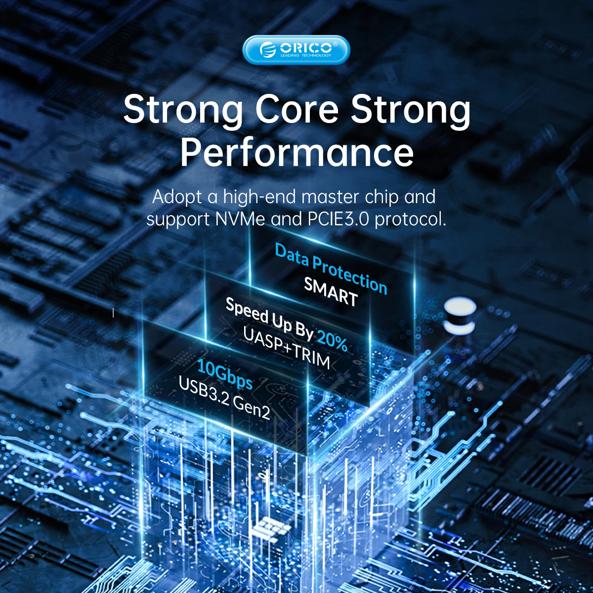 ORICO nvme ssd enclosure Using high-performance controller IC, supports UASP acceleration protocol and Trim, SMART functions, which can effectively improve SSD speed, protect data operation, and extend SSD life.