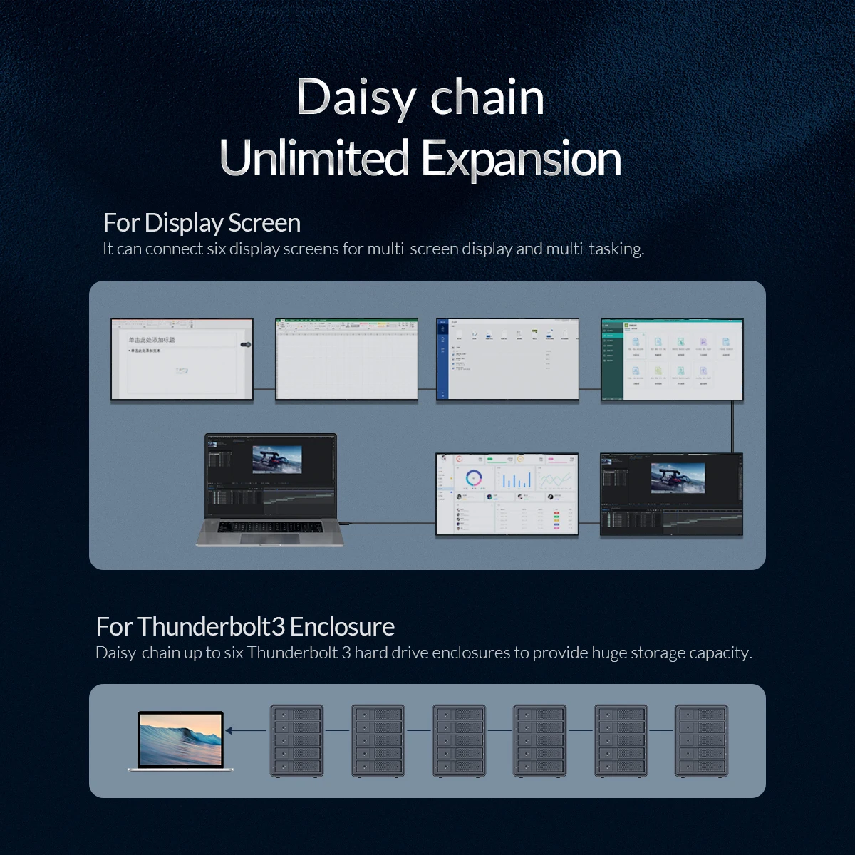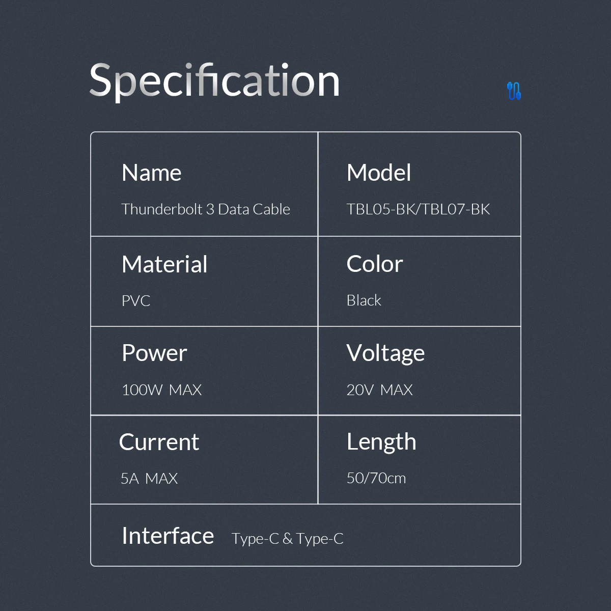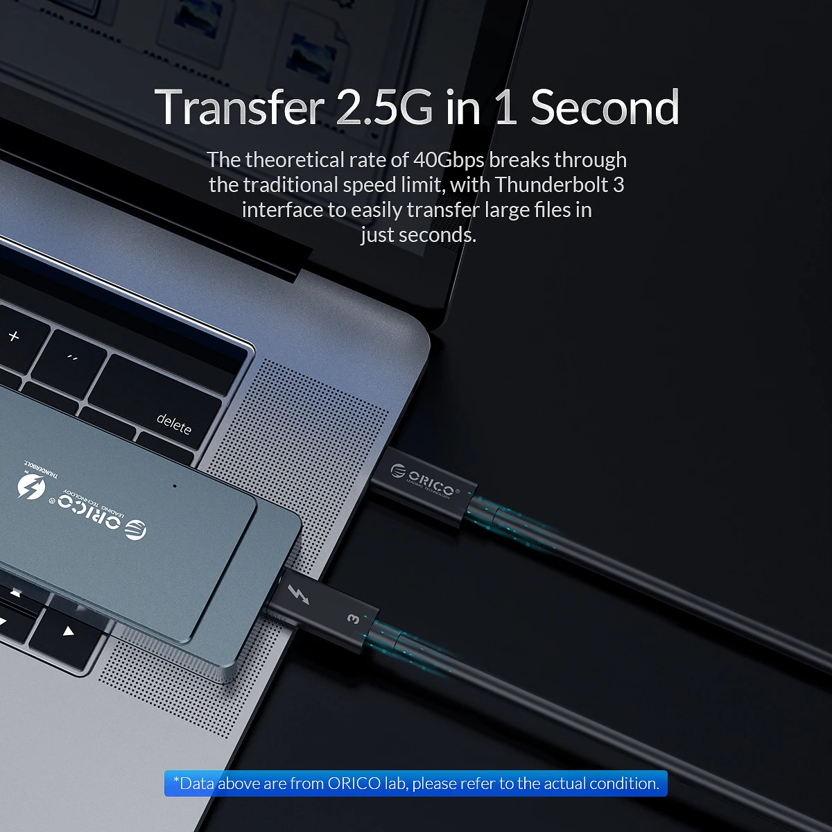 Thunderbolt 3 cable data transmission speed can reach 40Gbps, please note that the data transmission speed still depends on the port you use. The data transmission device needs to support Thunderbolt 3