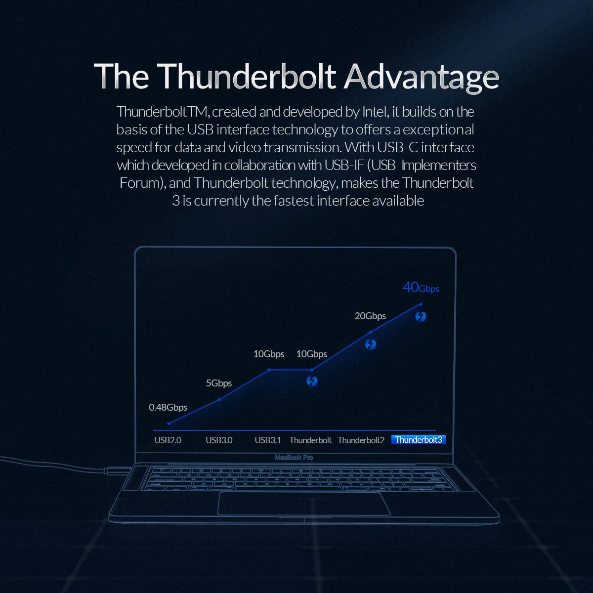 Thunderbolt TM, created and developed by Intel, it builds on the basis of the USB interface technology to offers a exceptional speed for data and video transmission. With USB-C interface whidh developed in collaboration with USB-IF(USB Implementers Forum), and Thunderbolt technology, makes the Thunderbolt 3 is currently the fastest interface available