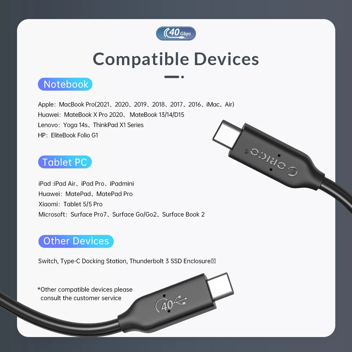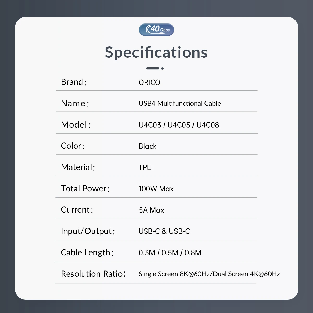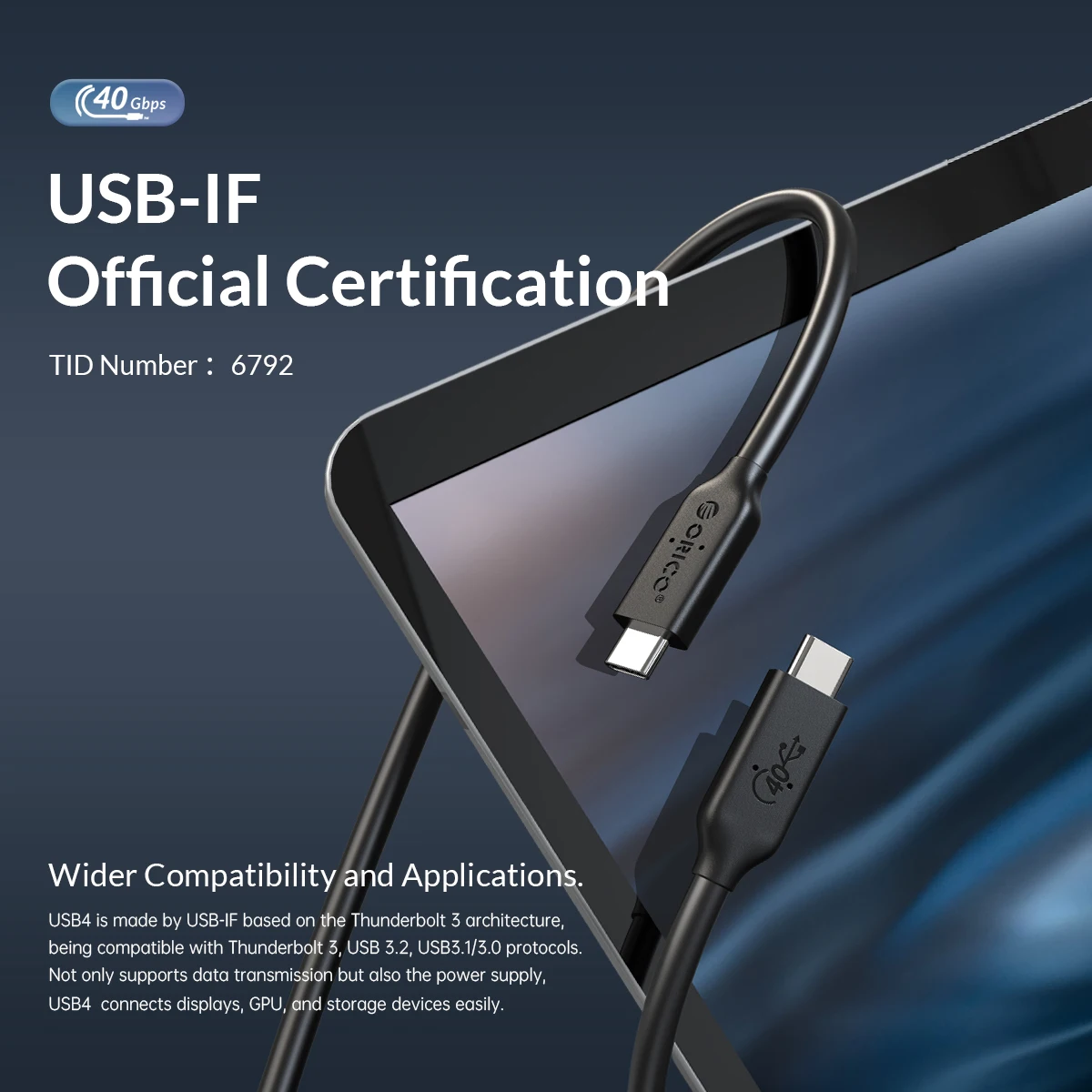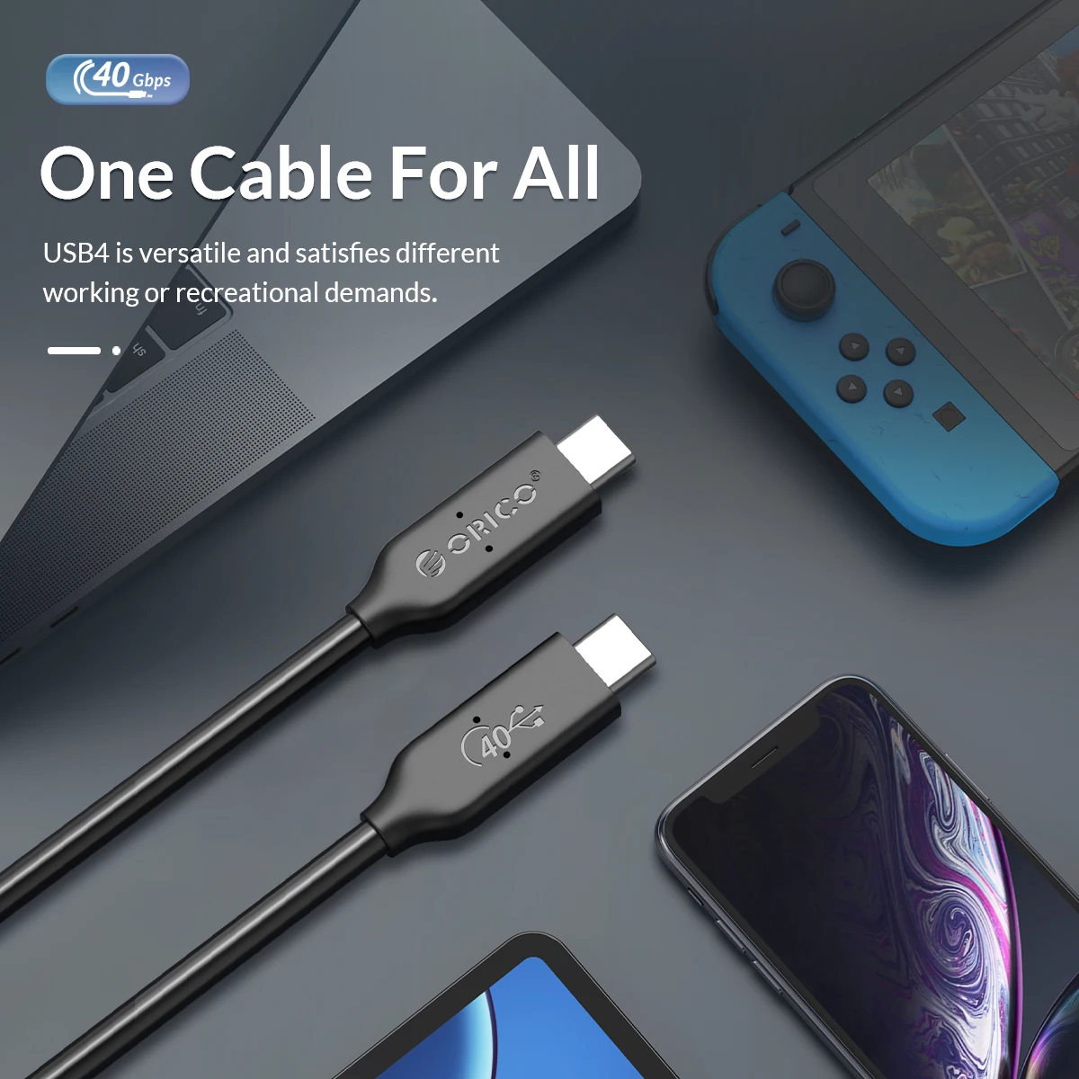 ORICO USB 4 Cable USB-IF Certified USB C Cable HD 8K @60Hz PD100W Fast Charge 40Gbps Data Transfer for Thunderbolt 3 Macbook
